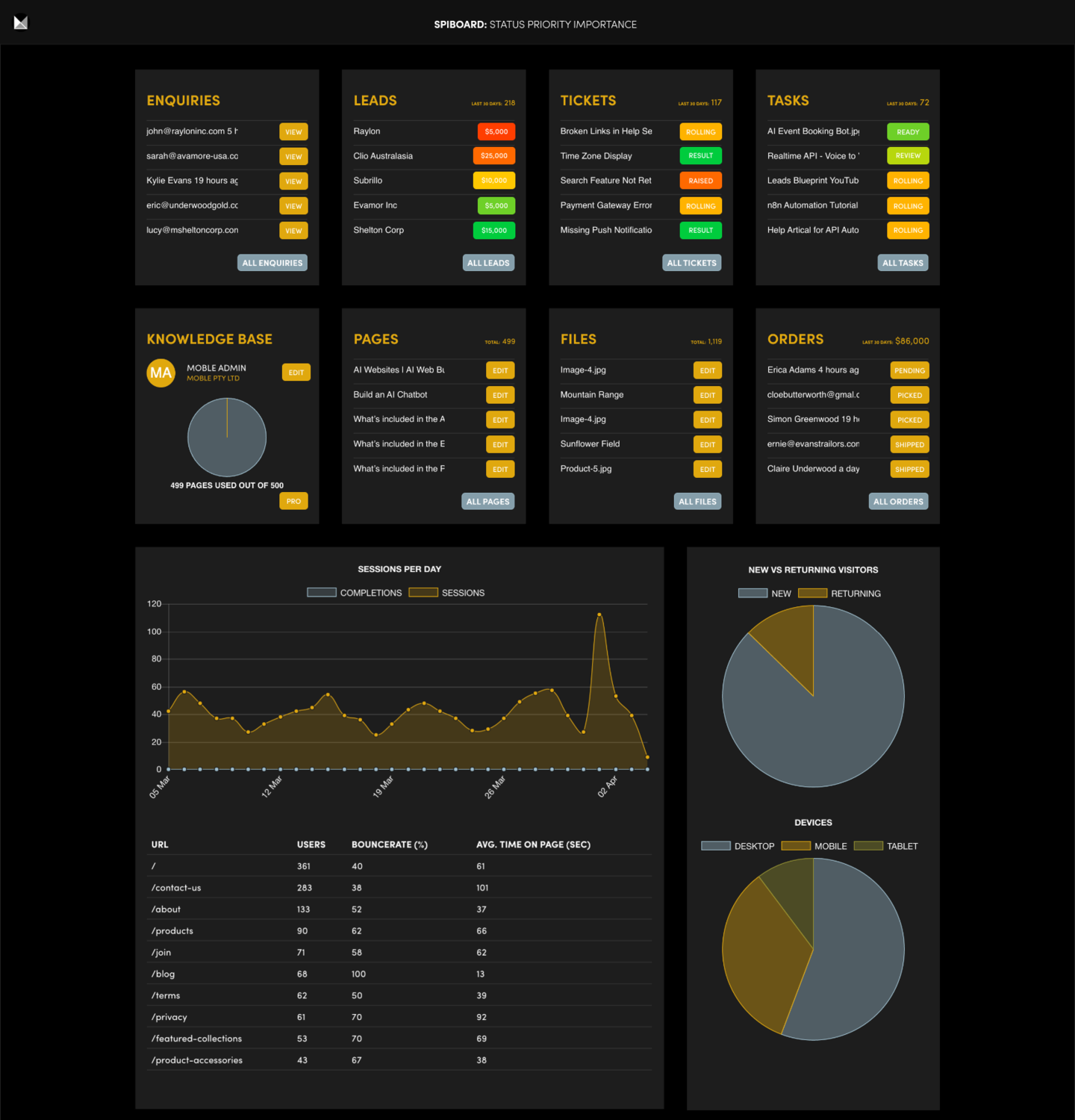 Your Chatbot logs every enquiry directly to SPIBoard, recording a SPI Score (Status, Priority, and Importance) for instant triage.