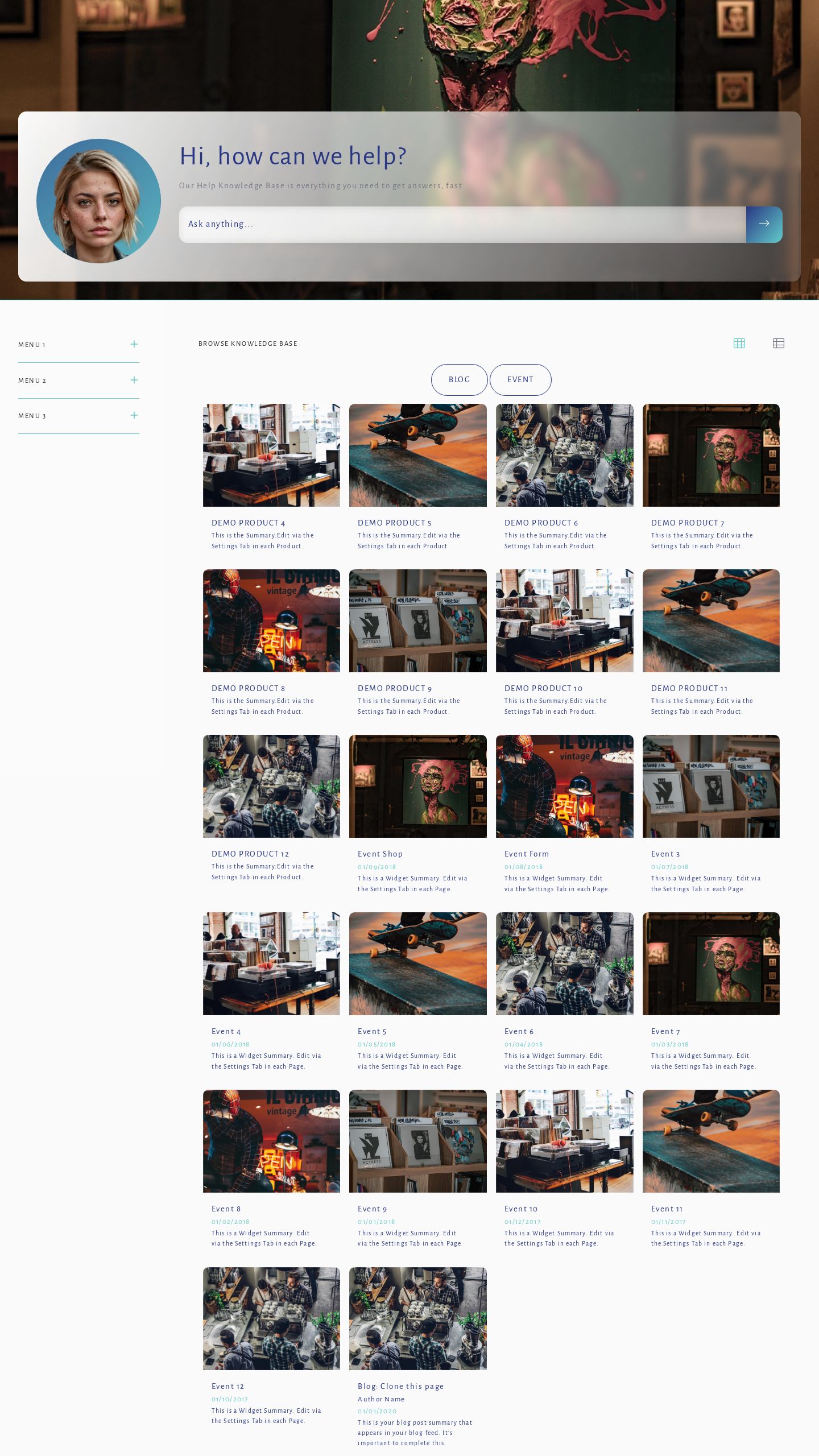 Headers are a key part of you werbsite housing you menus and navigations and key call to actions. All MOBLE headers have unlimited multi-menu tiers and can server 1,000's of pages with ease. Choose from over 100, or even ask us to build a custom one for you.