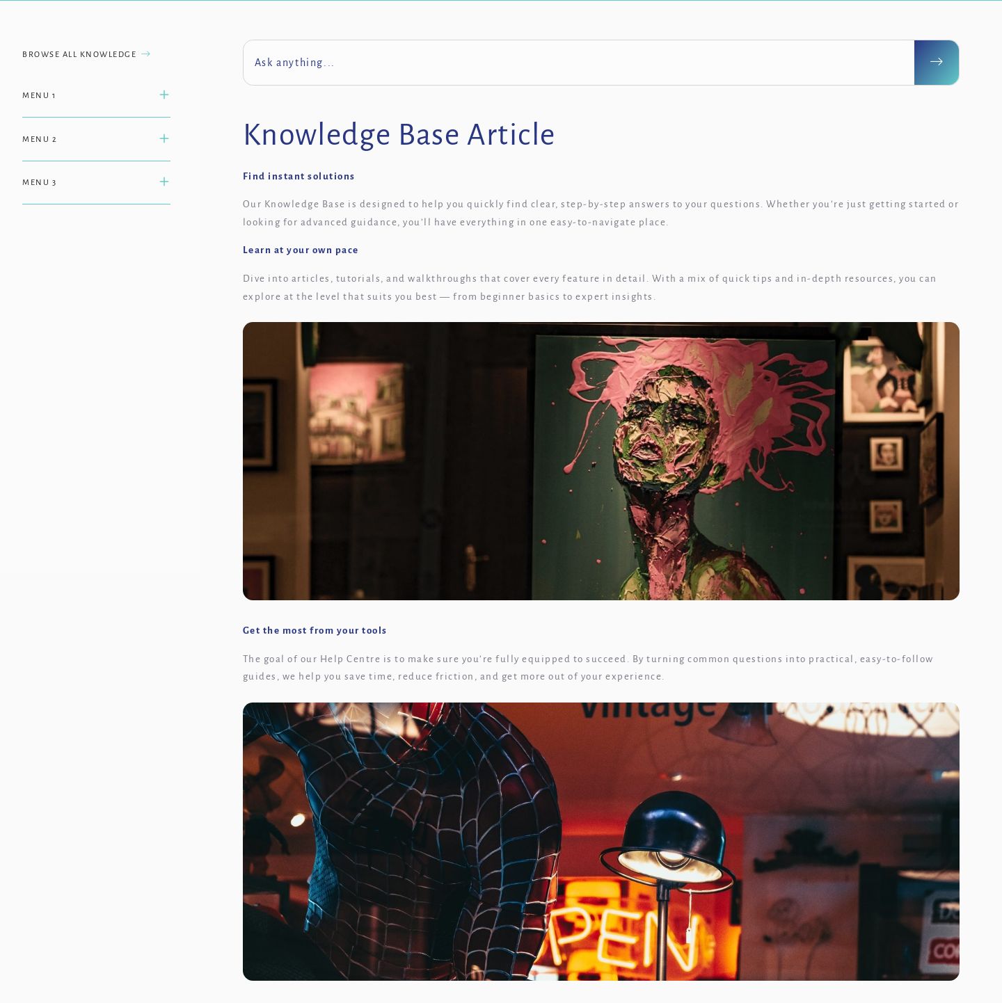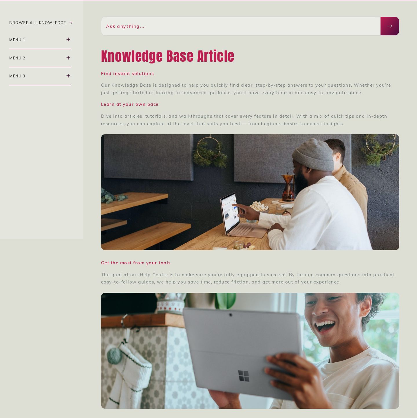 Kamoze utilises complex Layouts to give a feeling of a completely customised website design. Structured grids are intended for more advanced website designers to dive deeper and explore the more granular controls of MOBLE's visual web page editor. Kamoze guides your customers through Layouts with a dominant one third left side column, that alternates your primary colours with gradients and shift effects.