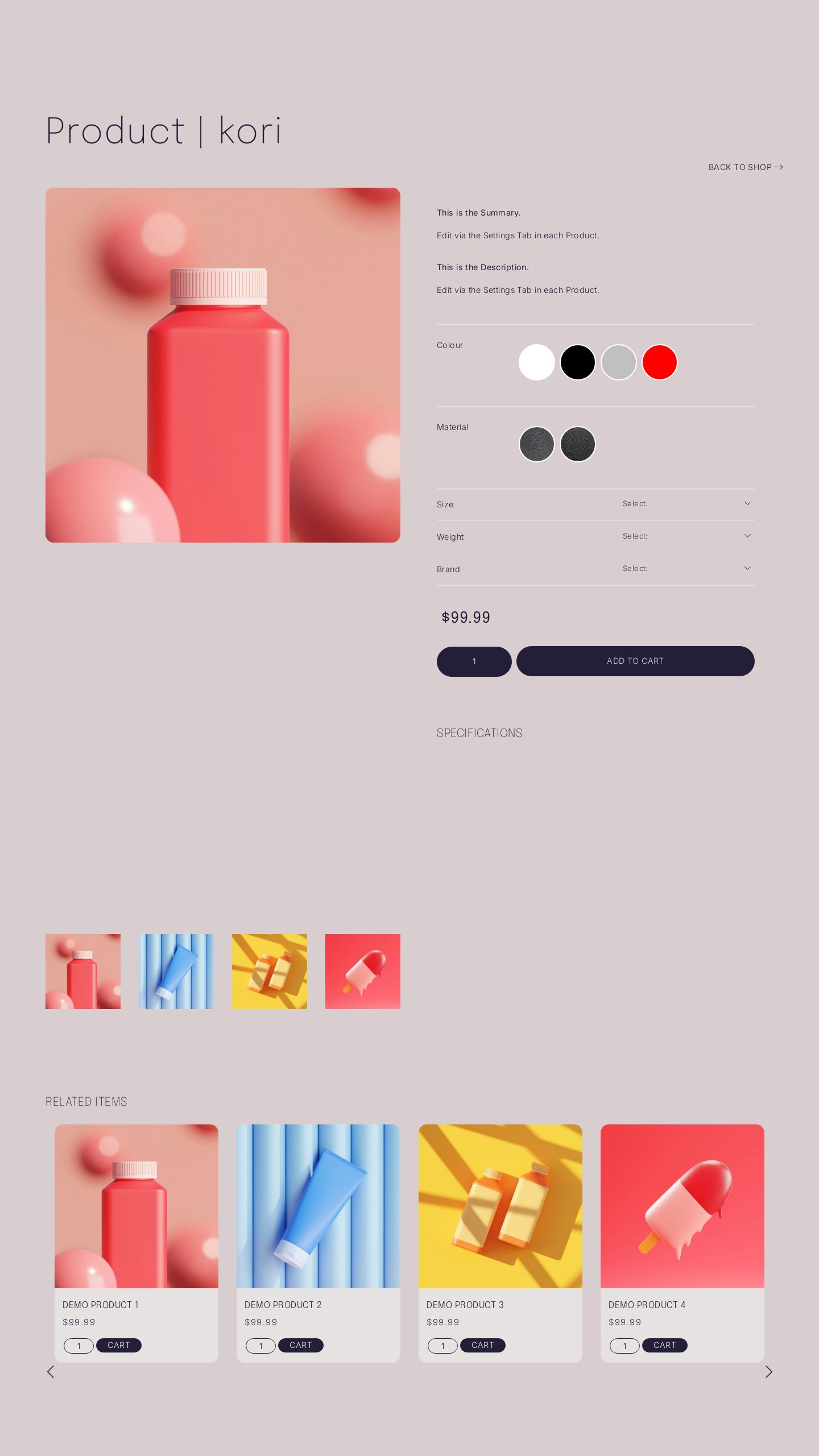 Product Pages and Category pages are an essential part of your shop. All are complete, with unlimited options and variants, tabs, lists and related items.