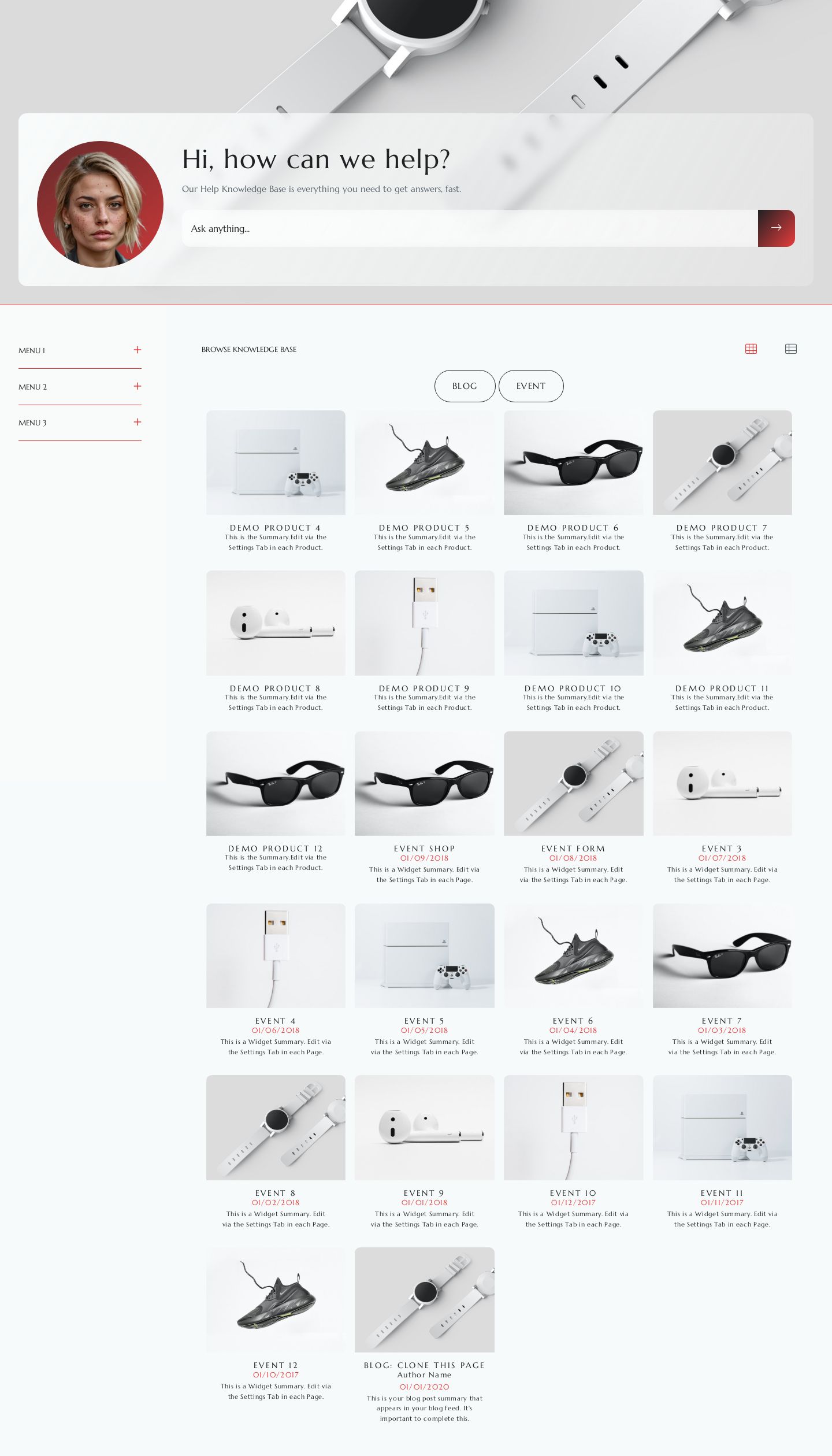 Lester is a fantastic example of how product categories can be used to showcase your products in a prominent sidebar nested on top of background images or videos. If you have products videos, products widgets can sit right on top of your video, for an extremely compelling method to encourage users to add products to their cart. Just like any MOBLE Layout you can flip between background Videos and background Images. Therefore, you can get started quickly with a product image, then swap to videos later, guaranteeing a flexible solution with and engaging user experience.