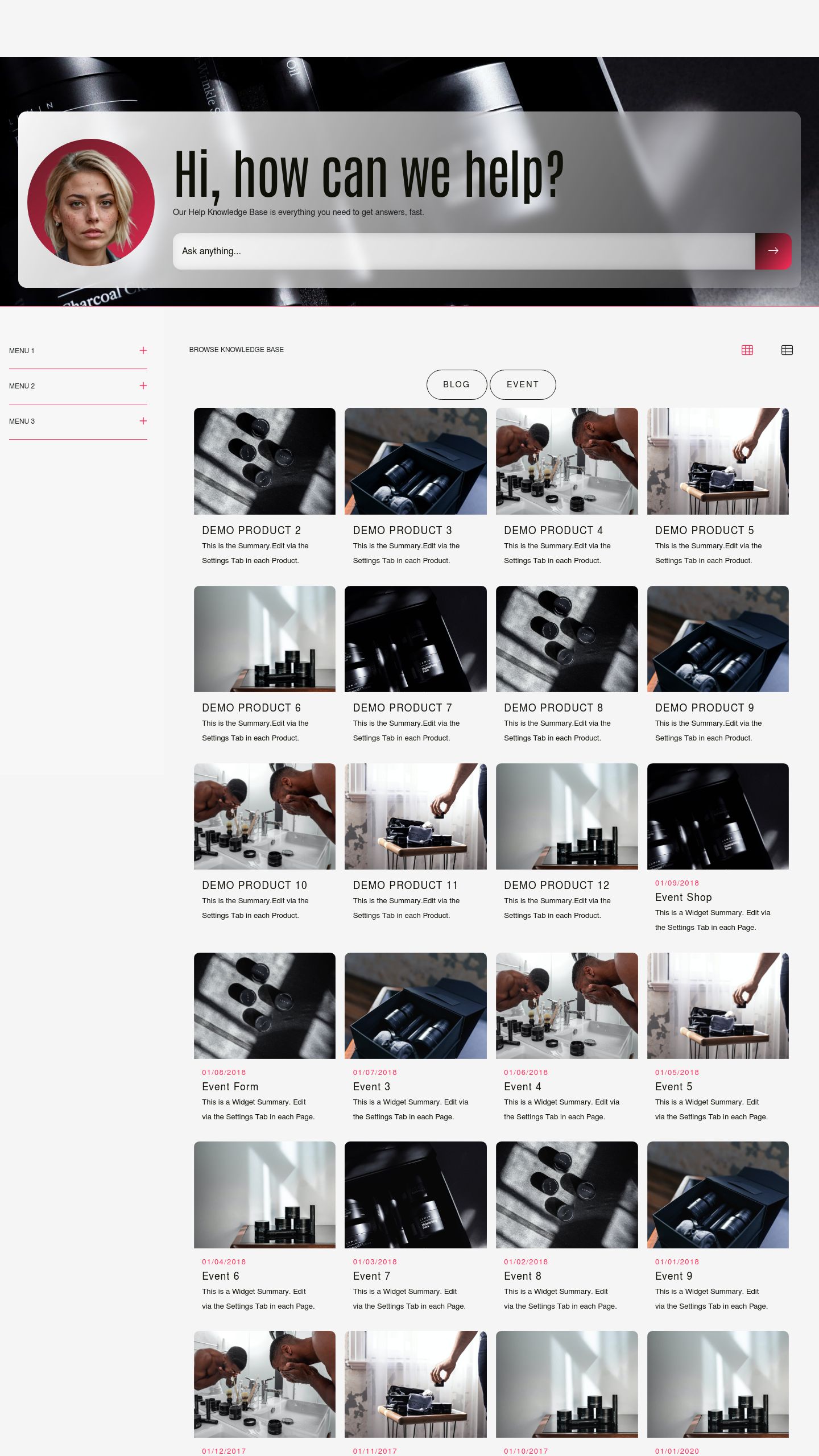 Create events to sell tickets in a shop, or subscriptions via a form. Be inspired with a 100 event layoust to choose from and fully customise to make your own.