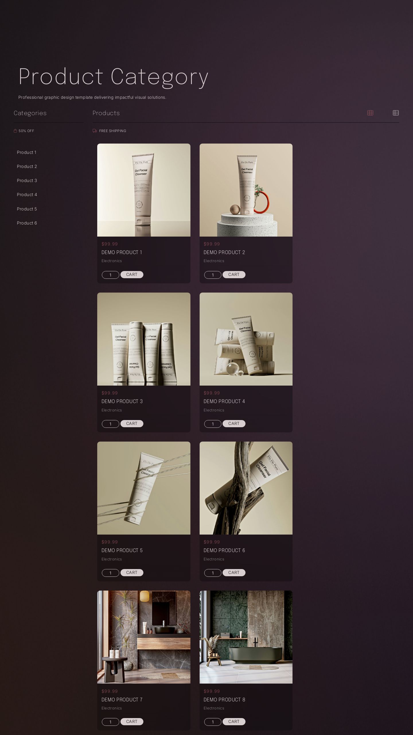 Product Pages and Category pages are an essential part of your shop. All are complete, with unlimited options and variants, tabs, lists and related items.
