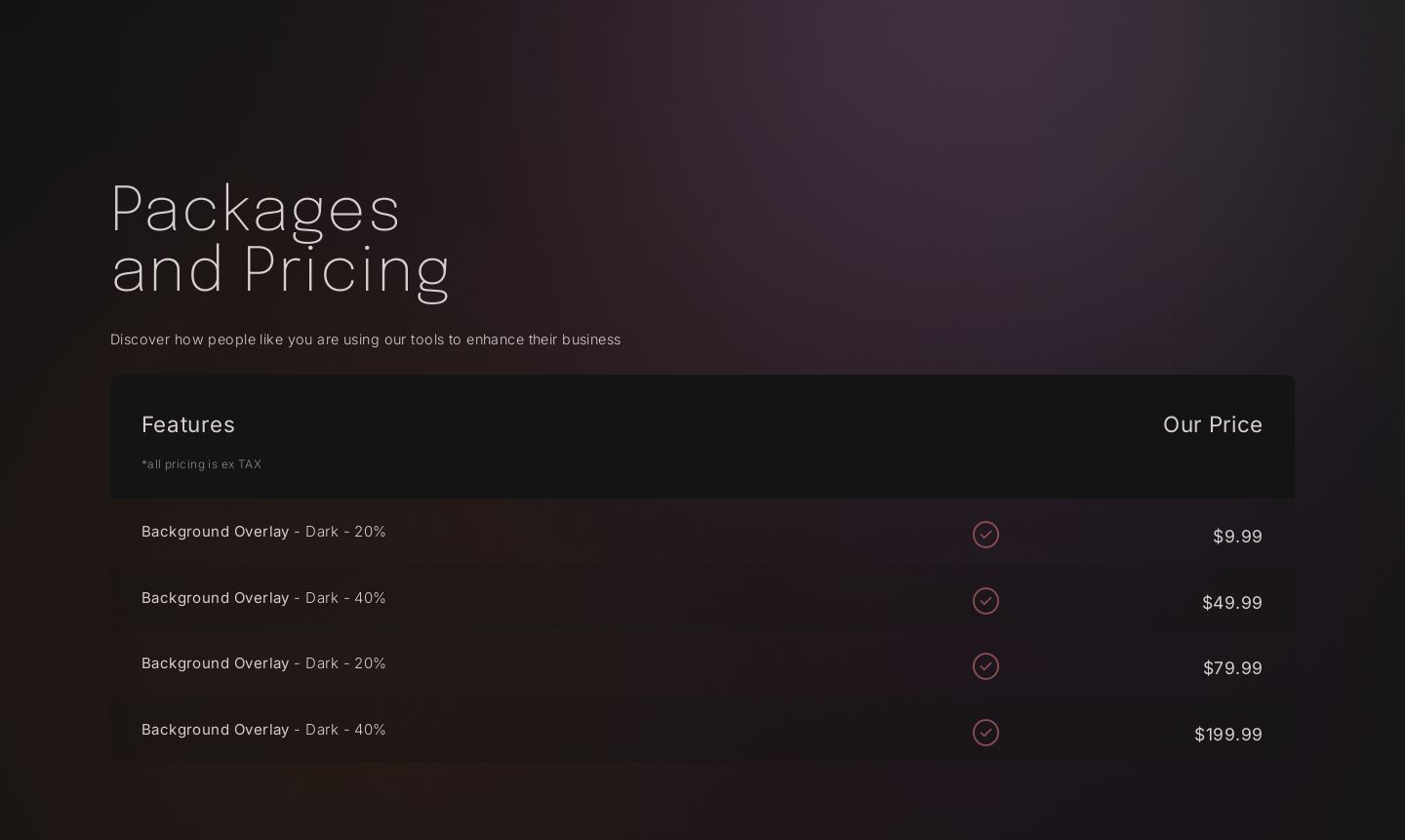Price List, Tables, Sales Bullets, FAQ's are just a few types of lists. Build cutsom lists and menus in moments or pick from 100's that are waiting to go.