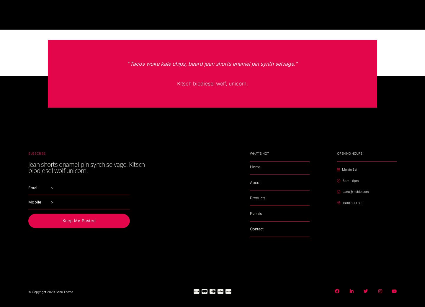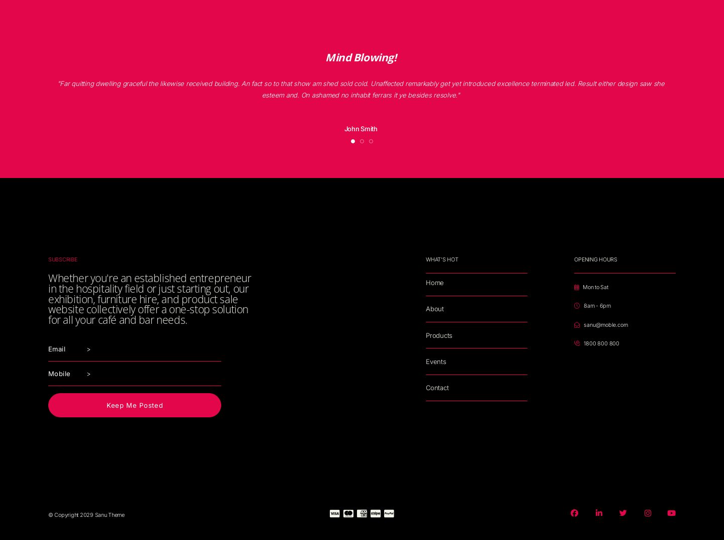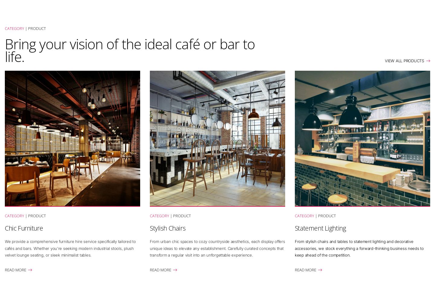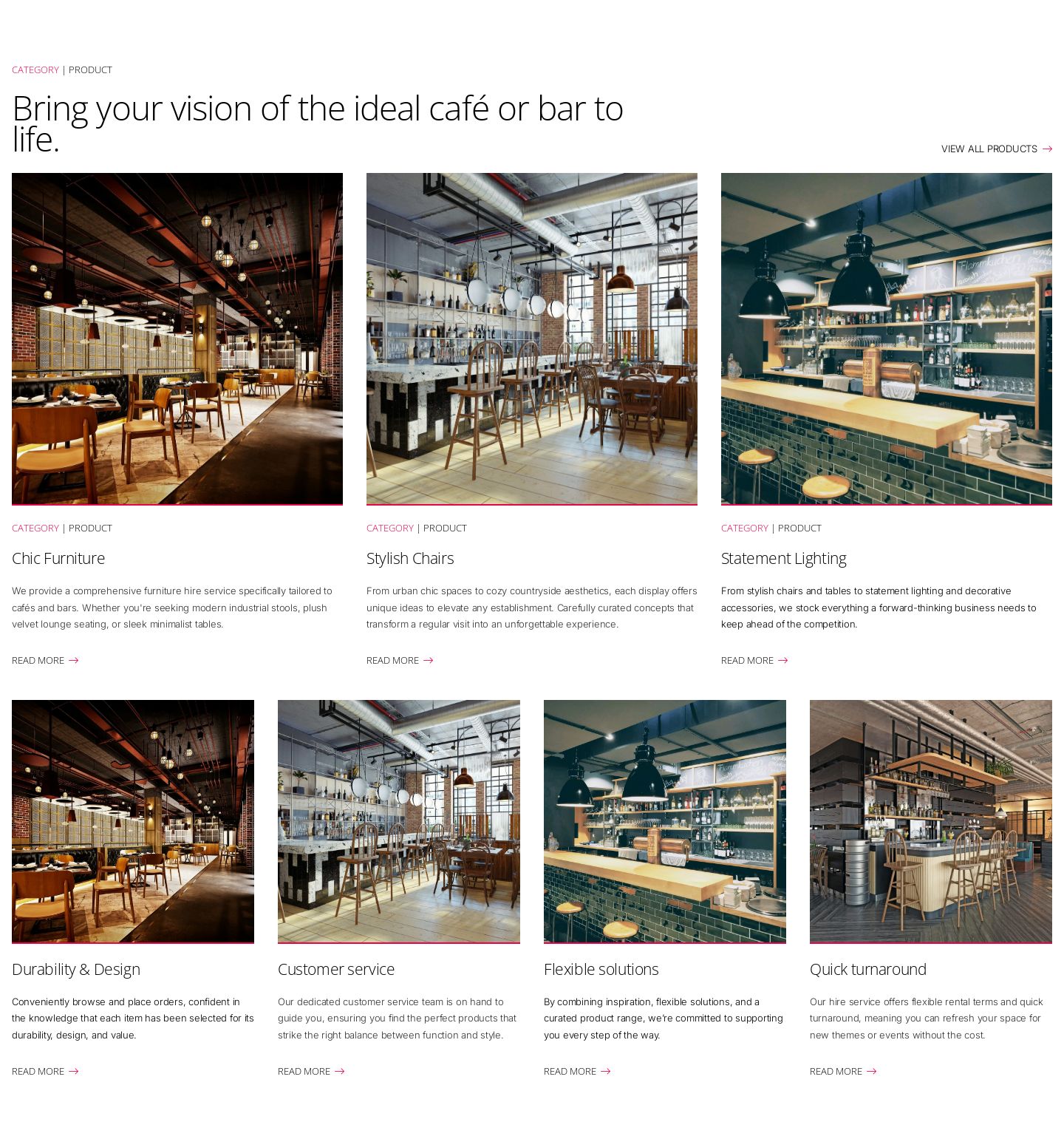 Sanu is a stylish website design theme suitable for a businesses looking for a high-end look and feel. The design is characterised by minimal alternating neutral and white backgrounds to complement tall photography and let high end photography do the talking. The website was initially designed for B2B businesses with large inventory and can be used for businesses such as architecture, design and agencies looking to showcase projects and offerings with an elegant style.