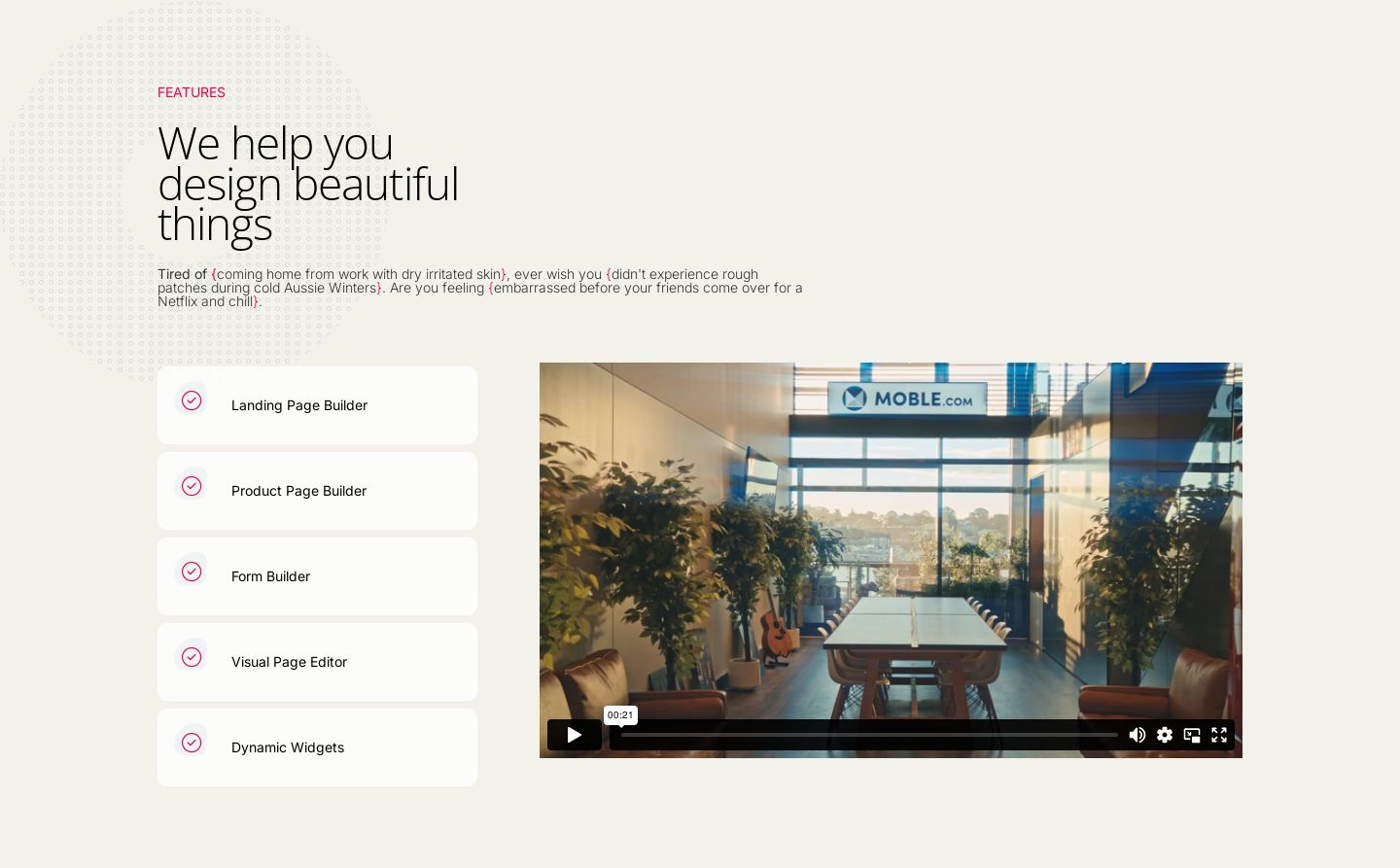 All MOBLE themes have access to over 5,000 layouts. Use these tabs to browse a small sample and get yourself inspired.