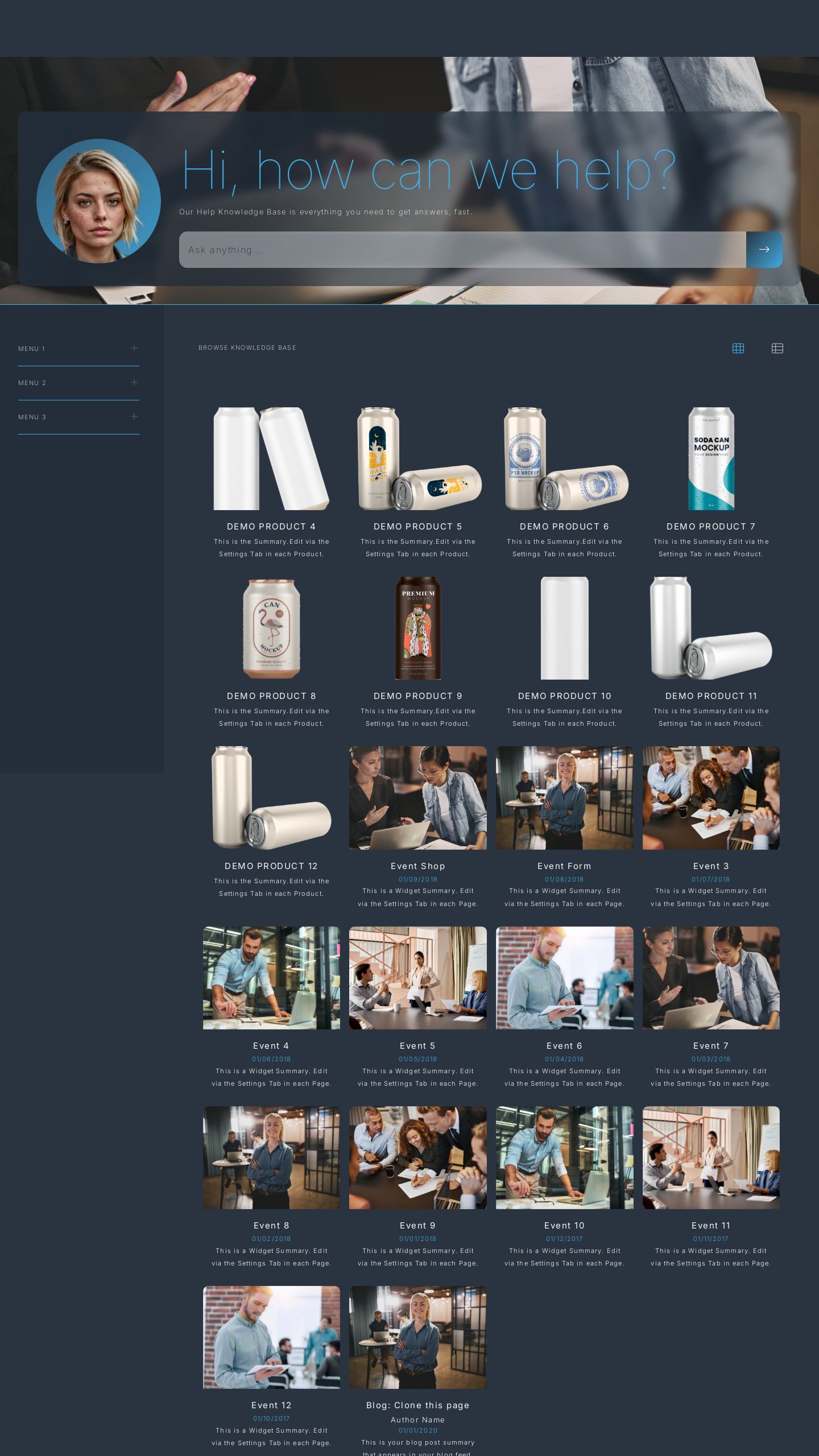 Soola can be used to showcase your content in a series of sliders, that pull any type of content from around your website such as products, images, videos, news, events, or just gold old pages. Simply tag your content and it will automatically display in your sliders, add as a many sliders as you like, anywhere on your website. Soola showcases how video backgrounds can be used on product, event and category pages, but of course your don't need to use videos in your backgrounds, the theme works just as well with image, colour and gradient to bring your web pages to life.