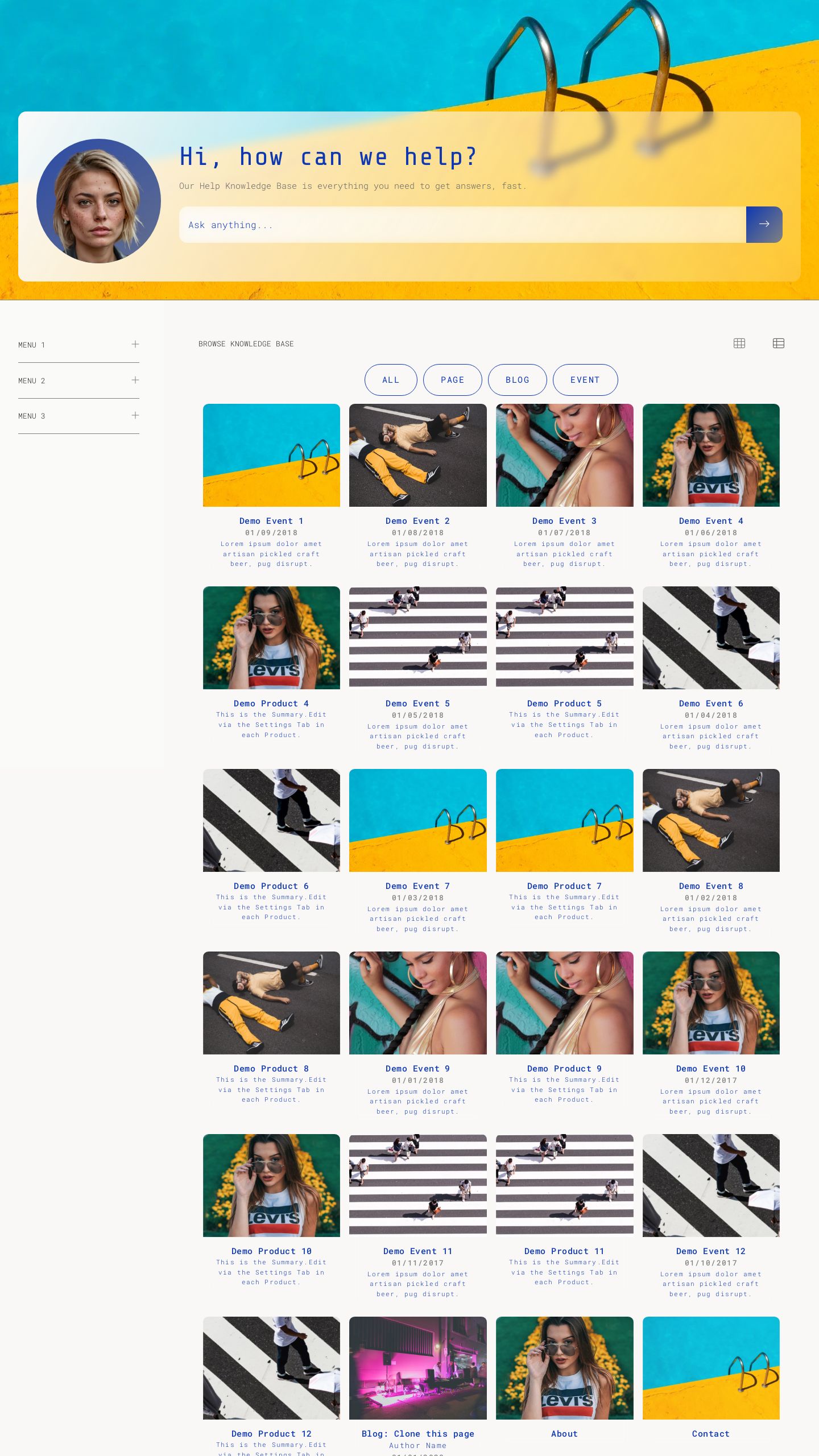 Create events to sell tickets in a shop, or subscriptions via a form. Be inspired with a 100 event layoust to choose from and fully customise to make your own.