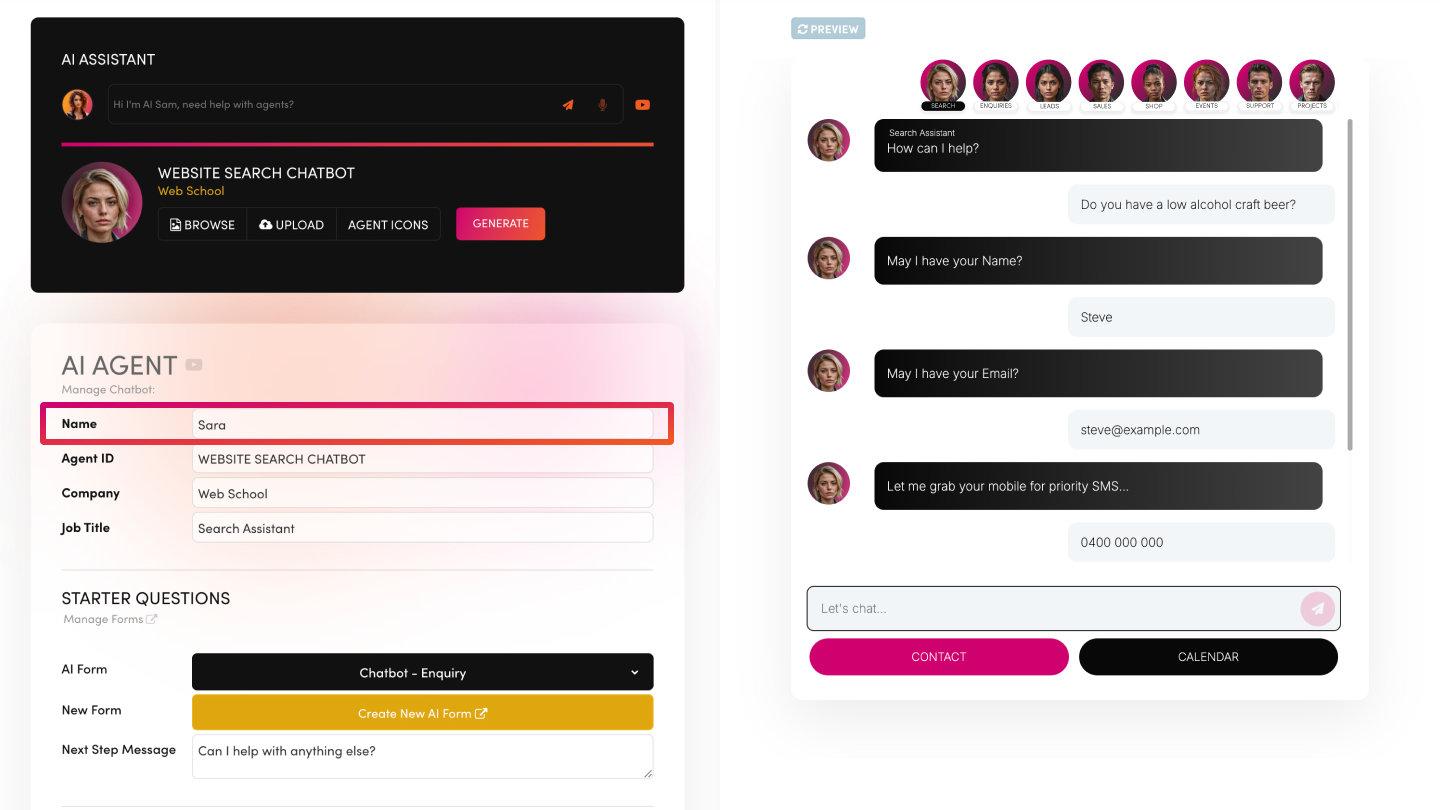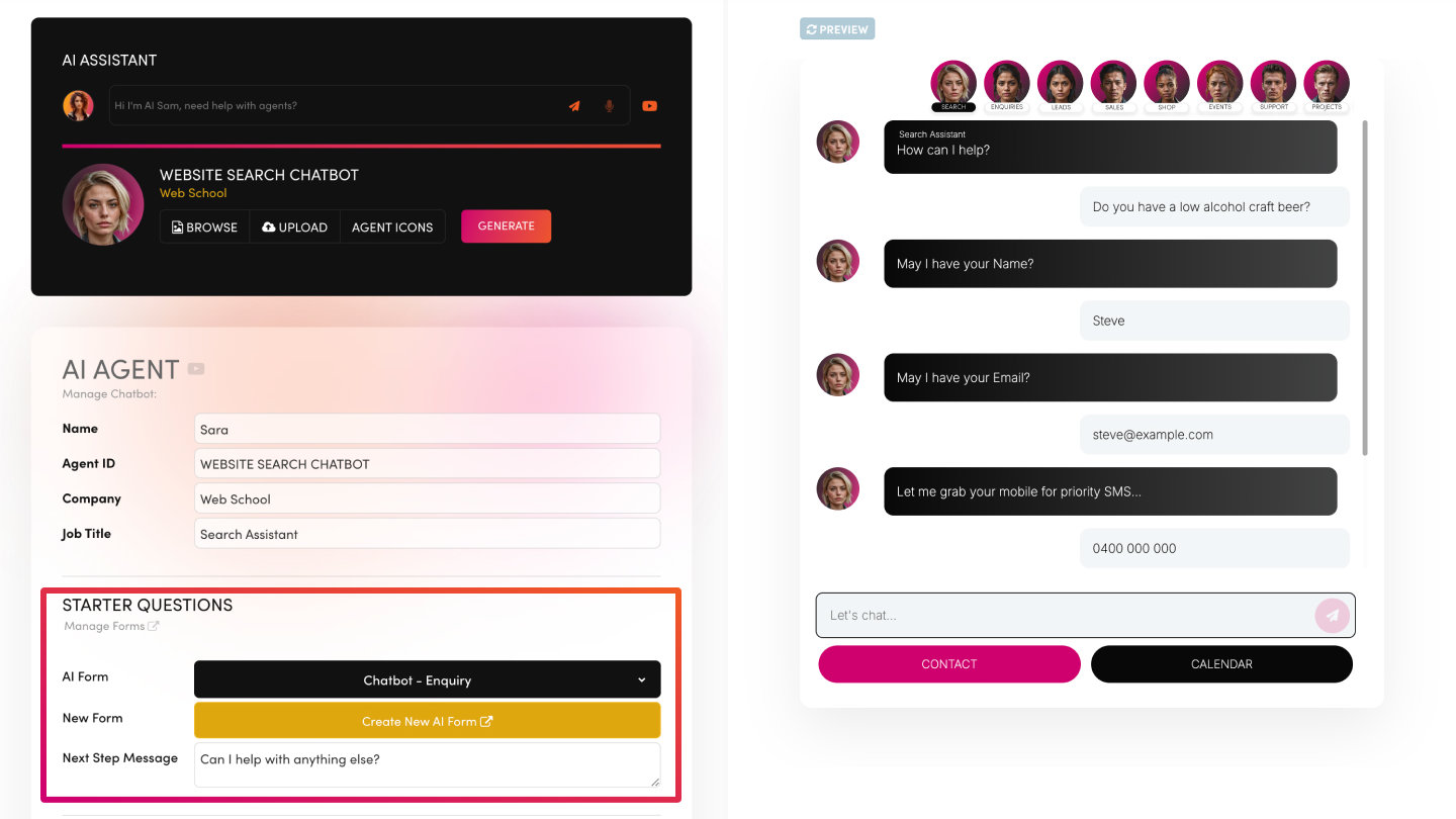 These distinct Customer Avatars ensure that each Chatbot addresses the specific needs of its target audience effectively.