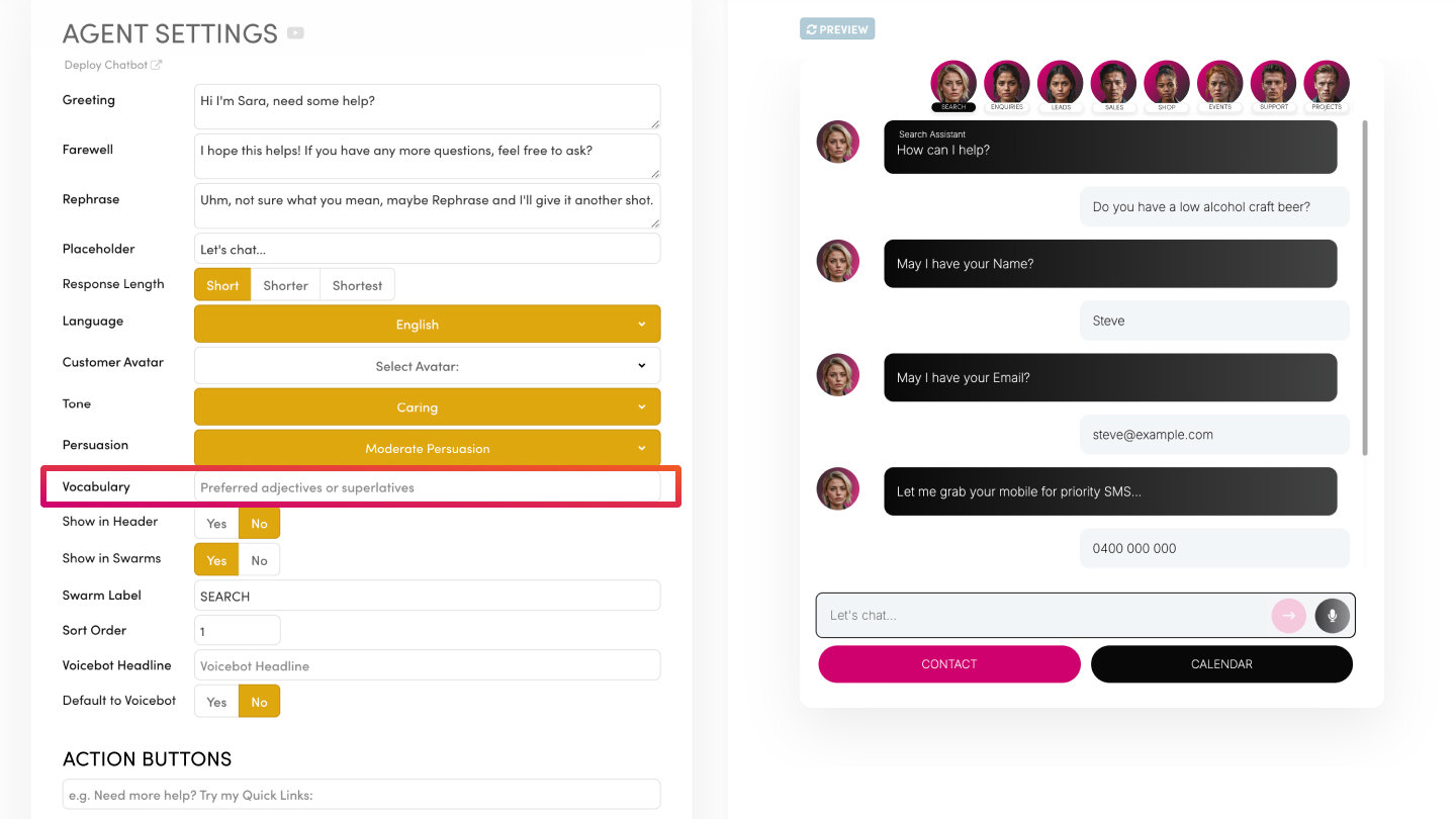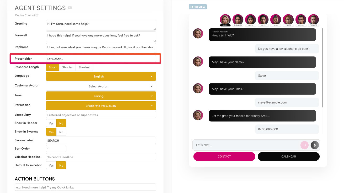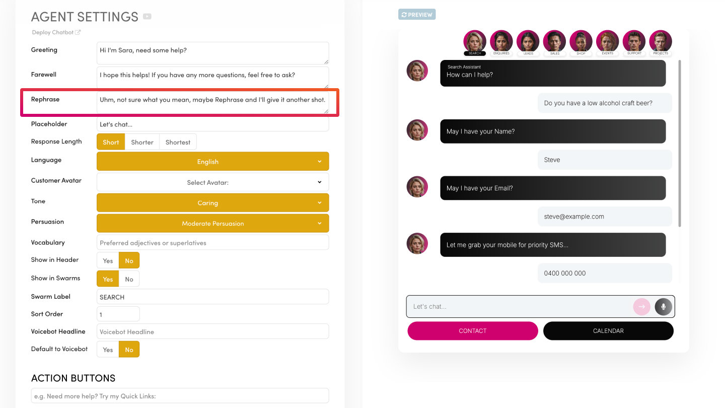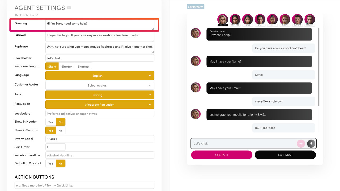 Use your Farewell to spotlight the Action Buttons located under your Chatbot. For instance, if you’ve set “BOOK A MEETING” or “SIGN UP NOW” as a button, the Farewell can encourage users to click it before they exit.