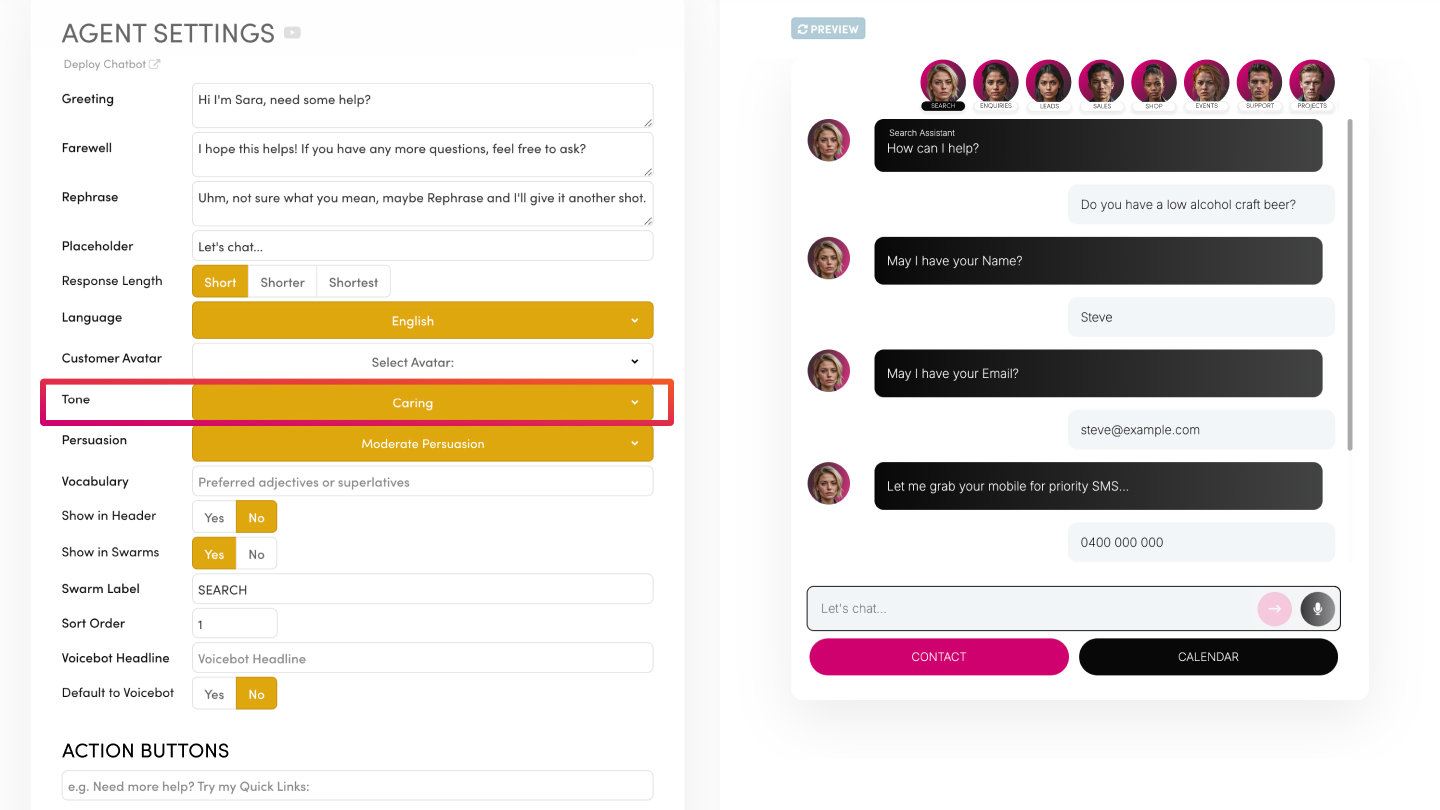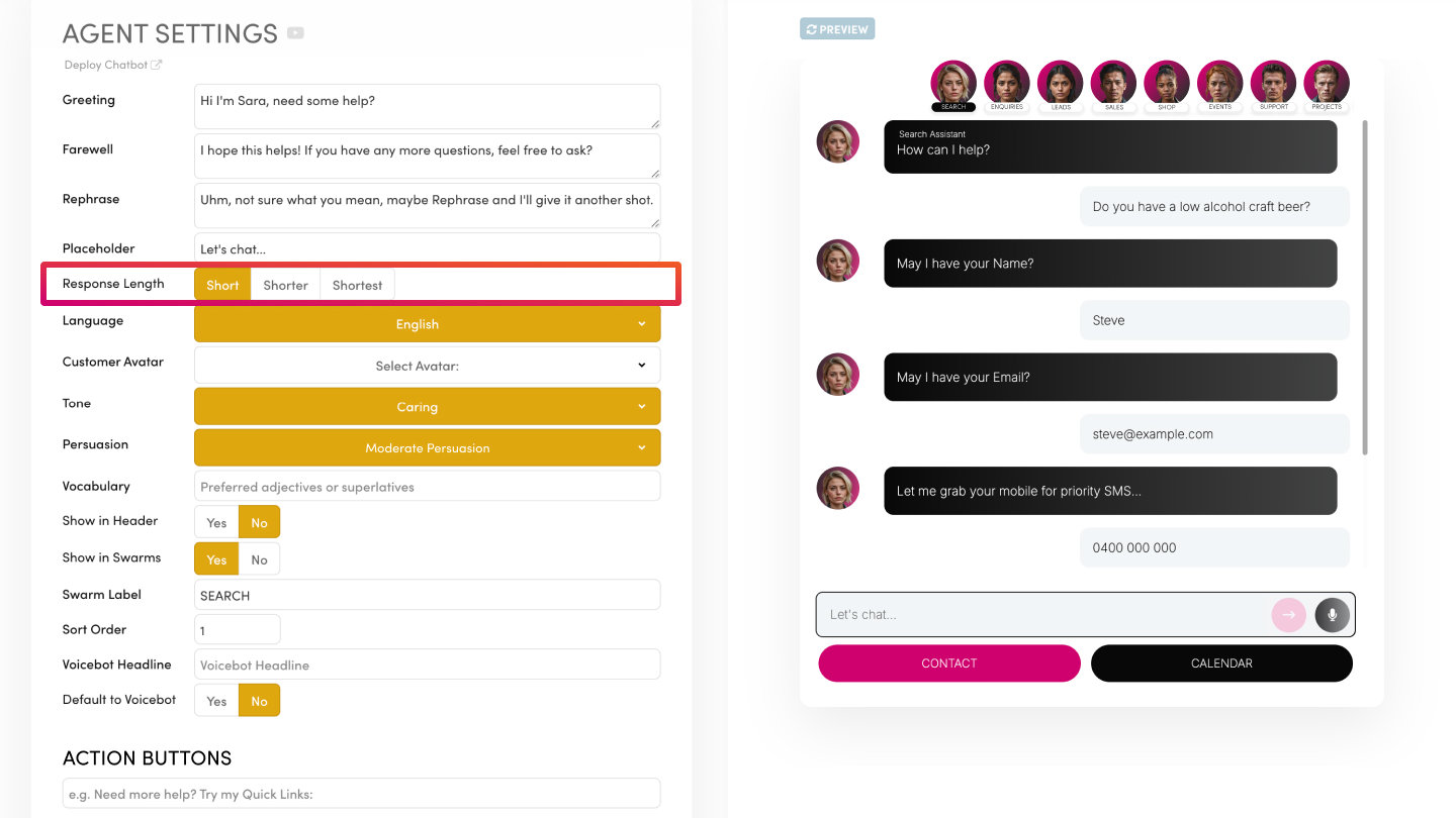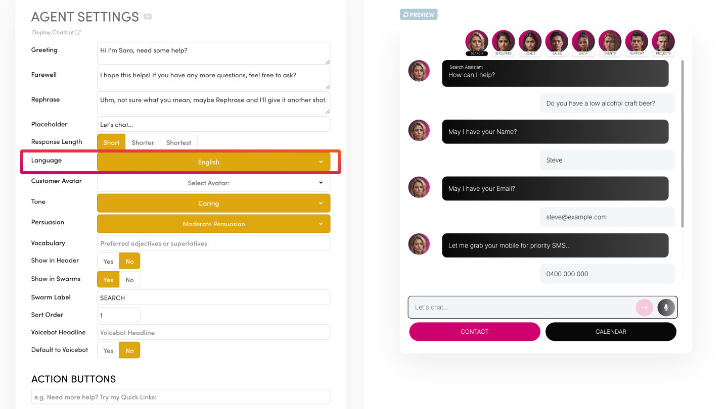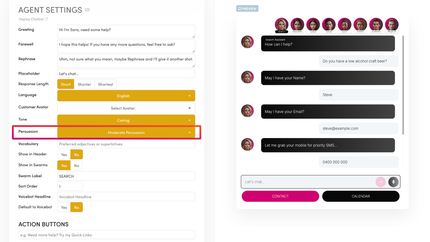 Use your Farewell to spotlight the Action Buttons located under your Chatbot. For instance, if you’ve set “BOOK A MEETING” or “SIGN UP NOW” as a button, the Farewell can encourage users to click it before they exit.