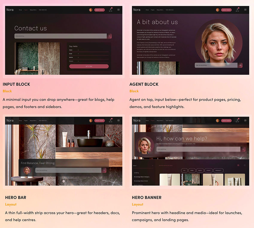 Born on MOBLE CMS, now embeddable on any website. Choose from embed types that match your page layout and user behaviour. Each embed begins with a simple prompt and can open the slide-in Chat Drawer for the full conversation—clean UI, zero clutter.