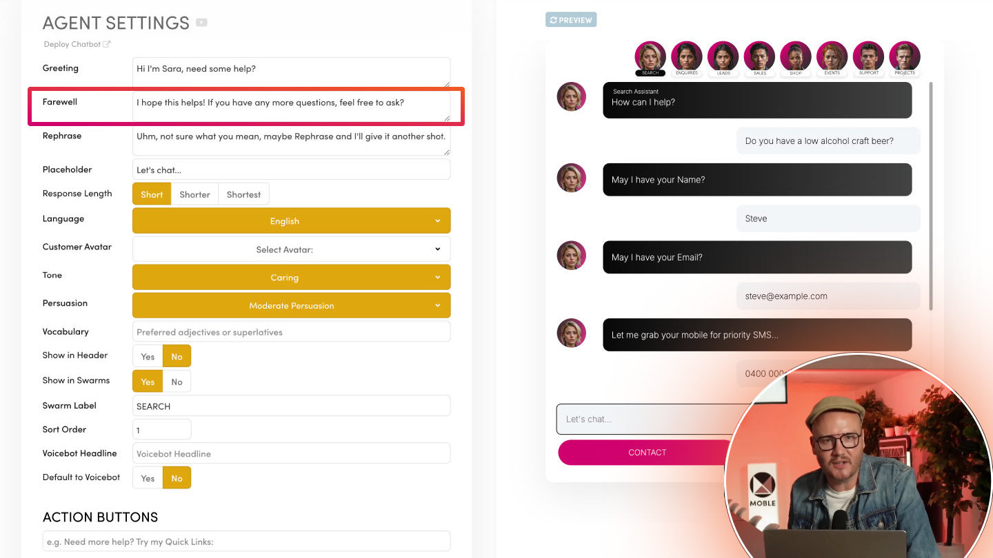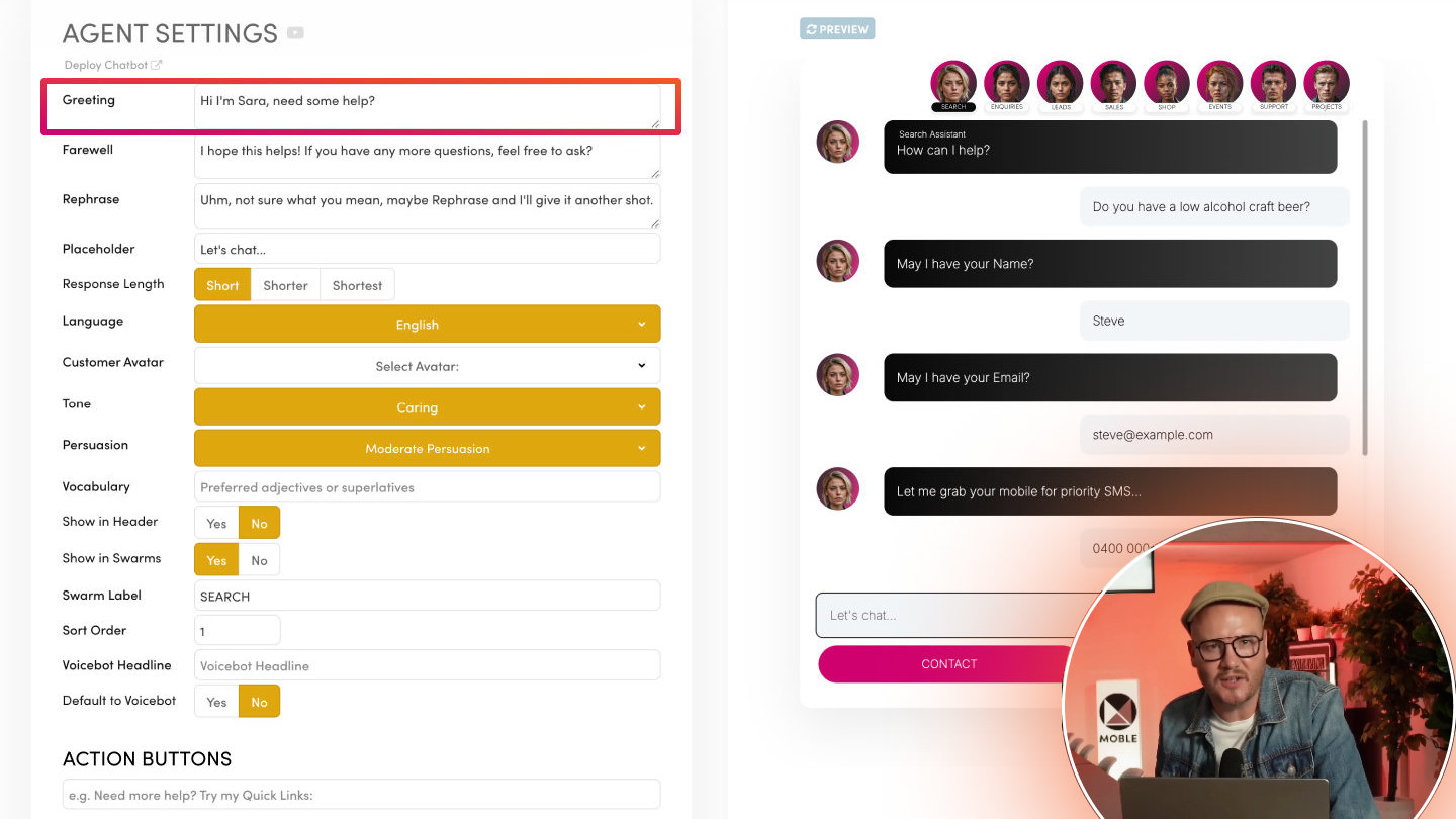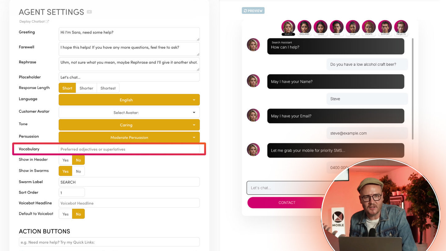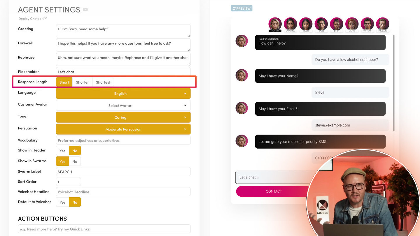 The Tone setting defines the personality or overall feeling of your Chatbot’s language—like “Positive,” “Formal,” “Friendly,” or “Quirky.” Meanwhile, Style dictates the writing approach—like “Academic,” “Conversational,” or “Persuasive.”