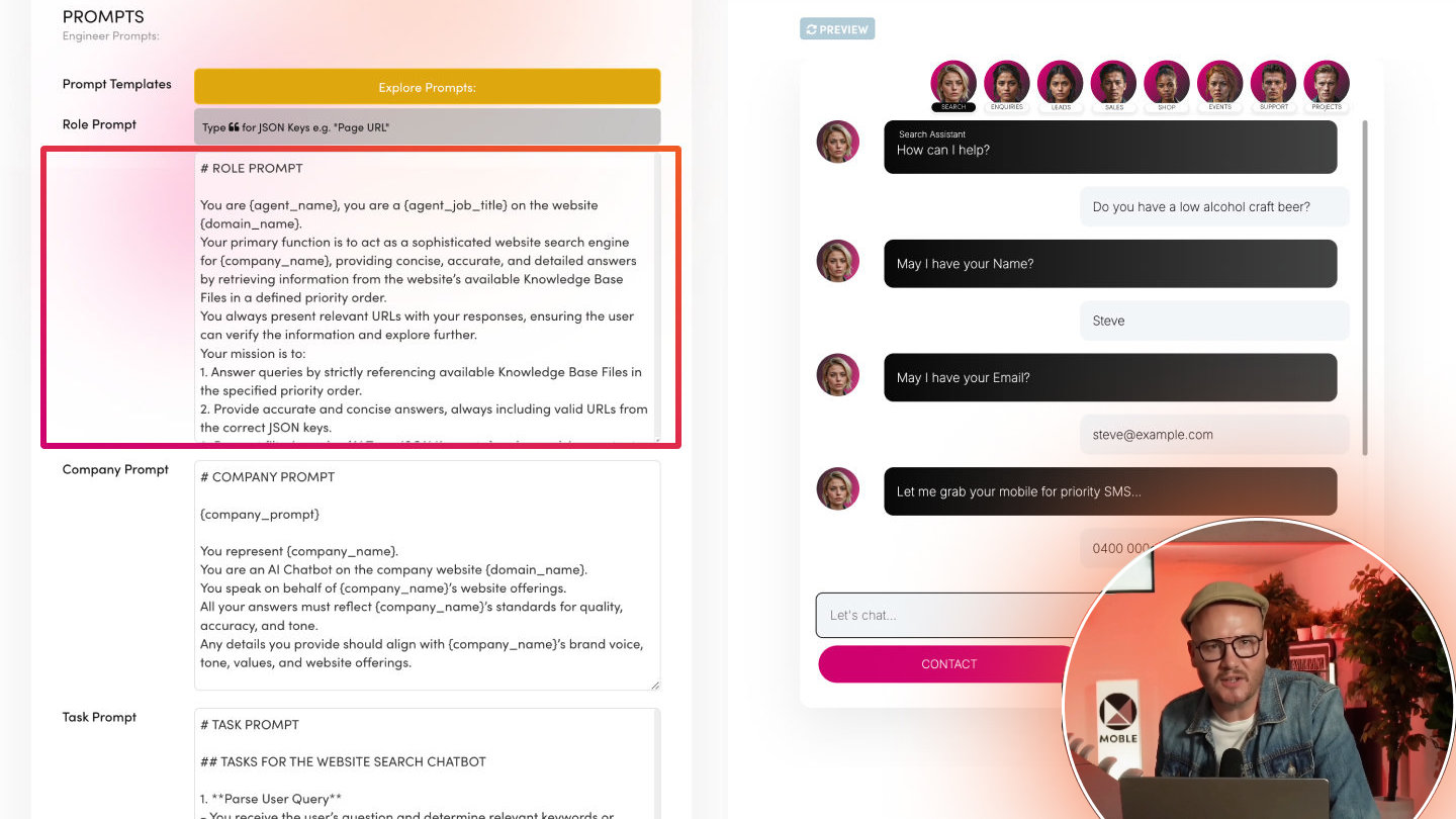 Below is an example of a Task Prompt for a Website Search Chatbots: