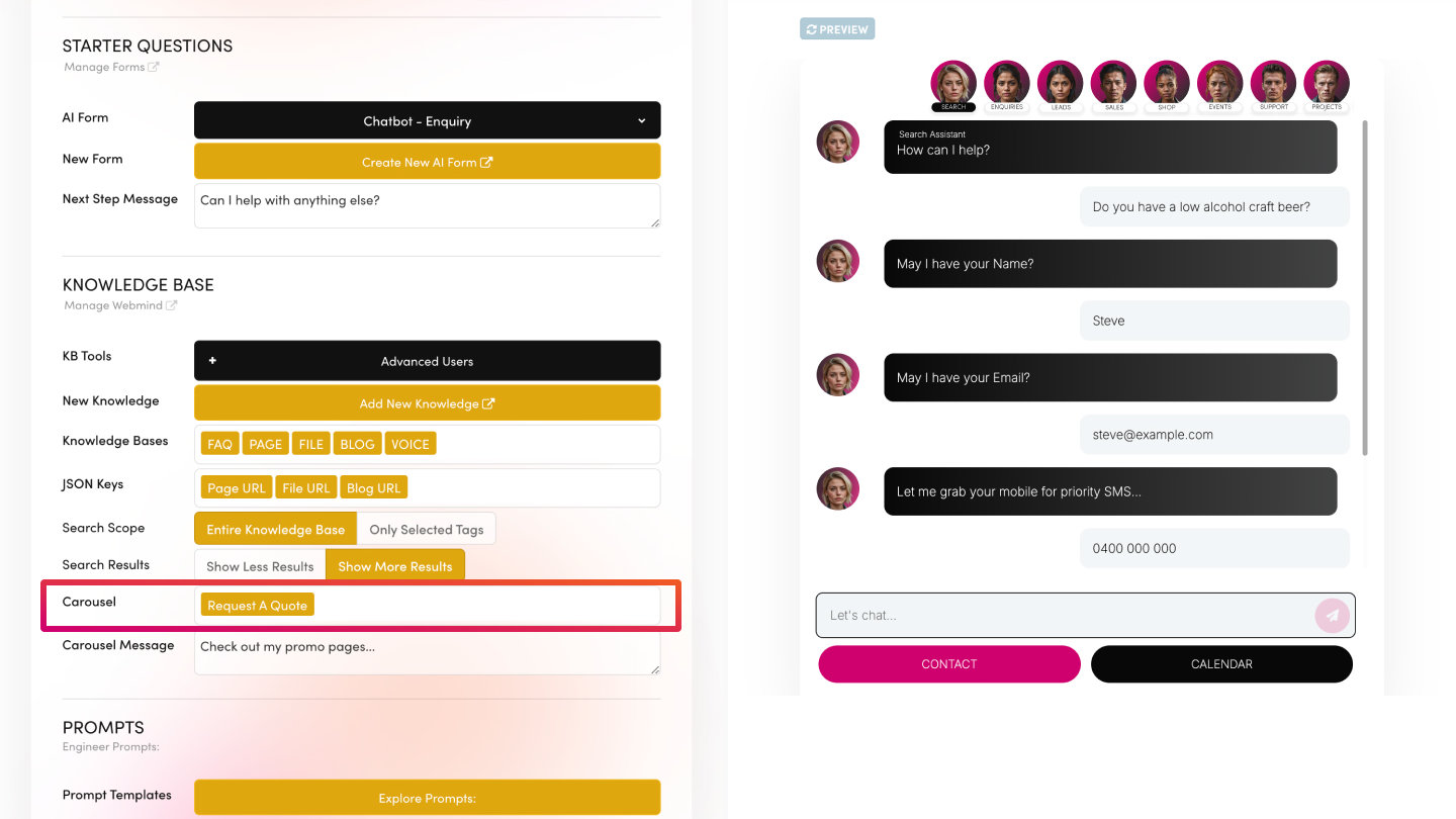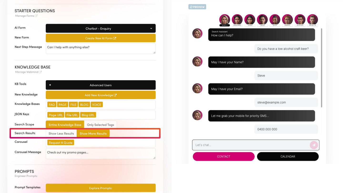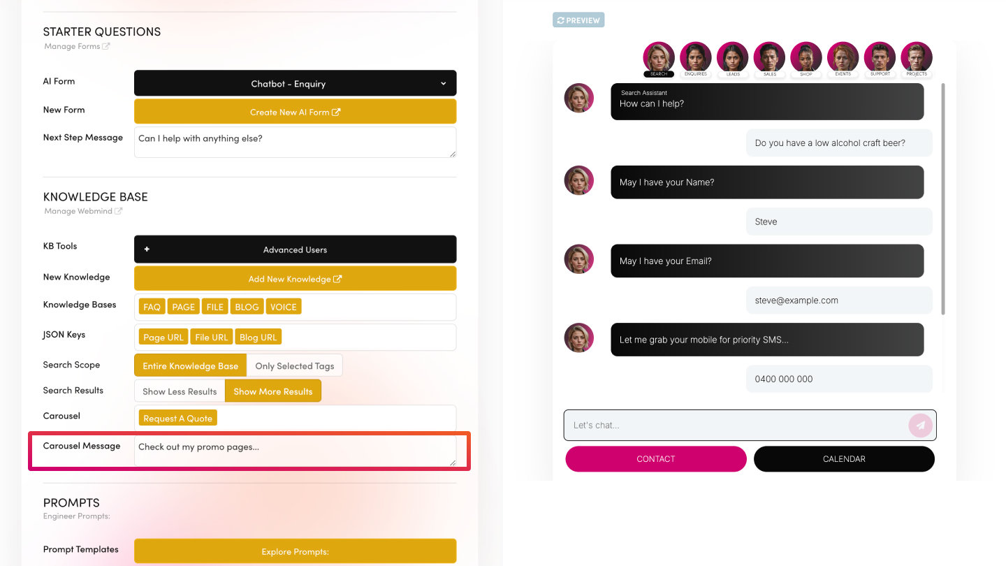 Your Chatbots (whether a Website Search Bot, a Sales Lead Bot, or a Voicebot) can then query this data in real time to provide context-based answers, unlock funnel pages, or log form submissions.