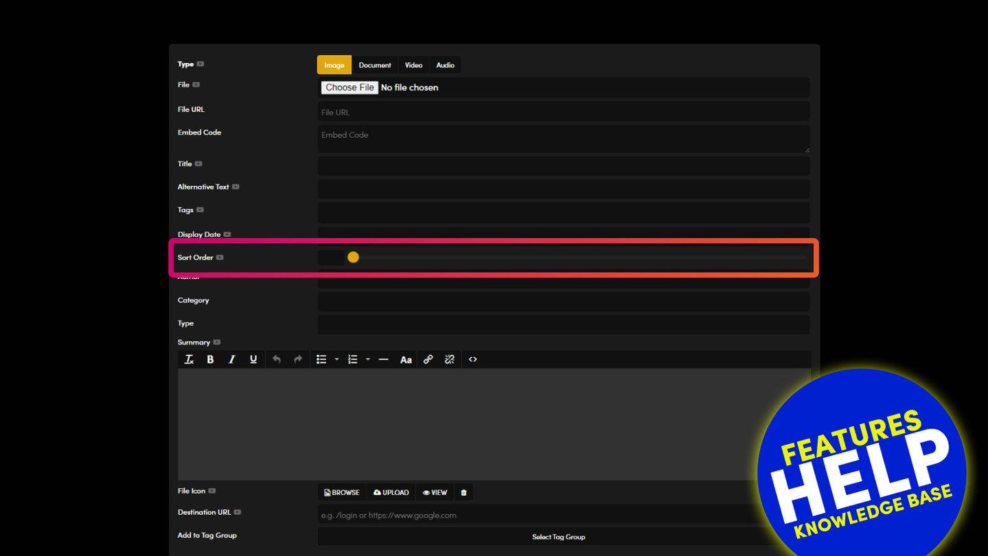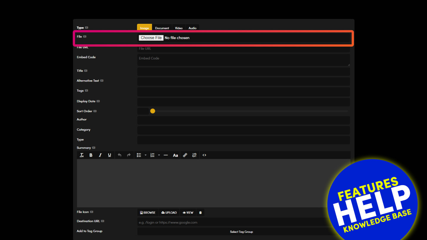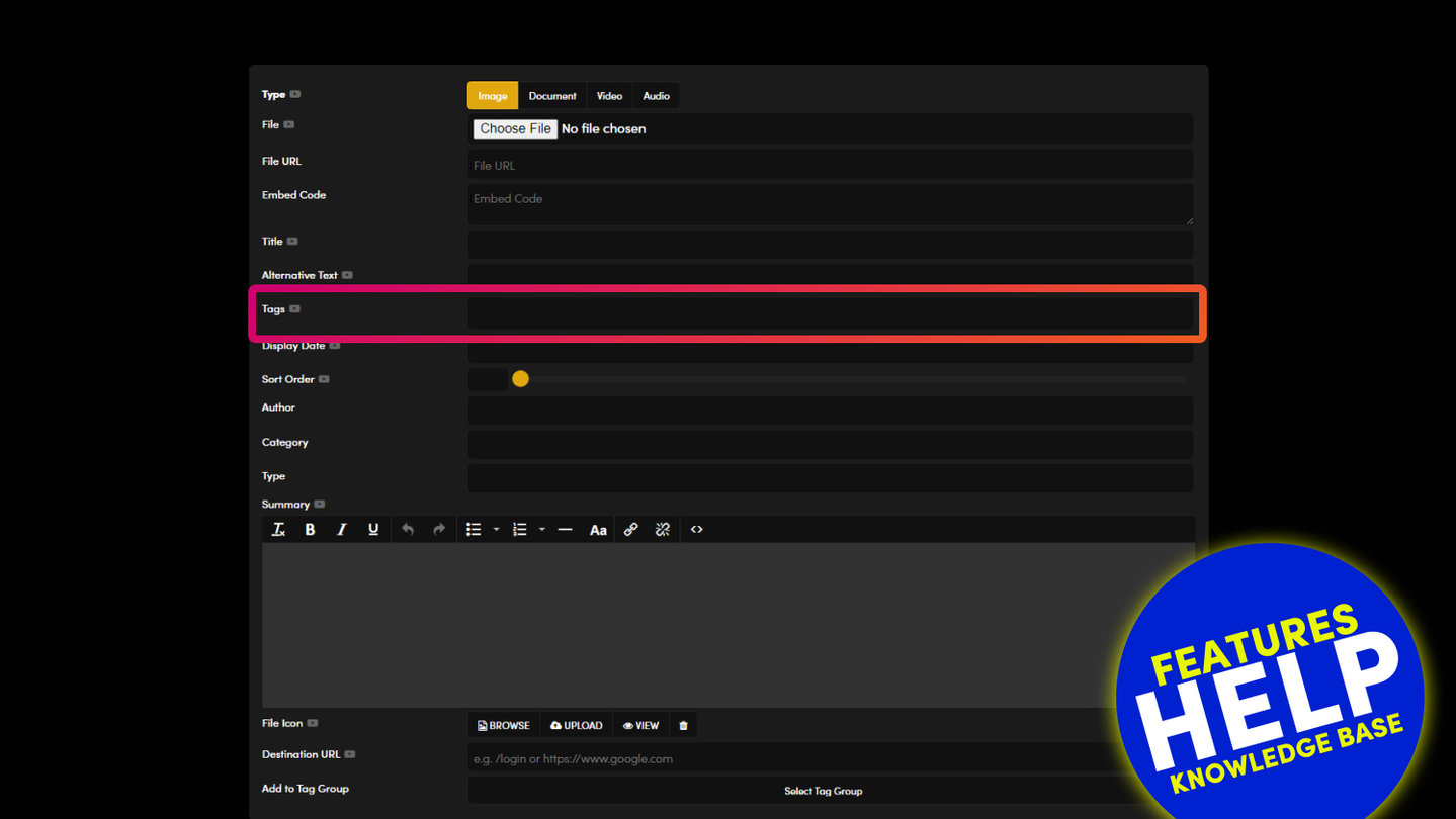 Once a 'Type' is assigned you can filter by the file type in various locations are the CMS, including: