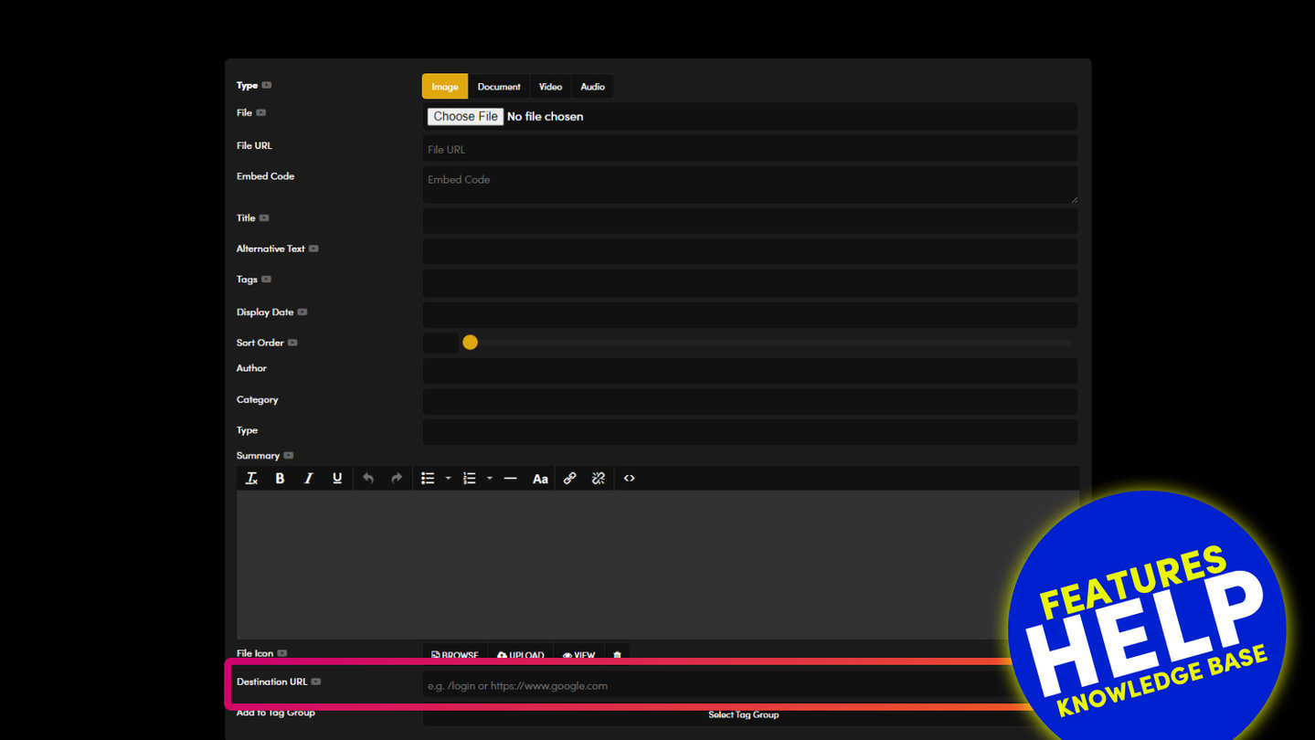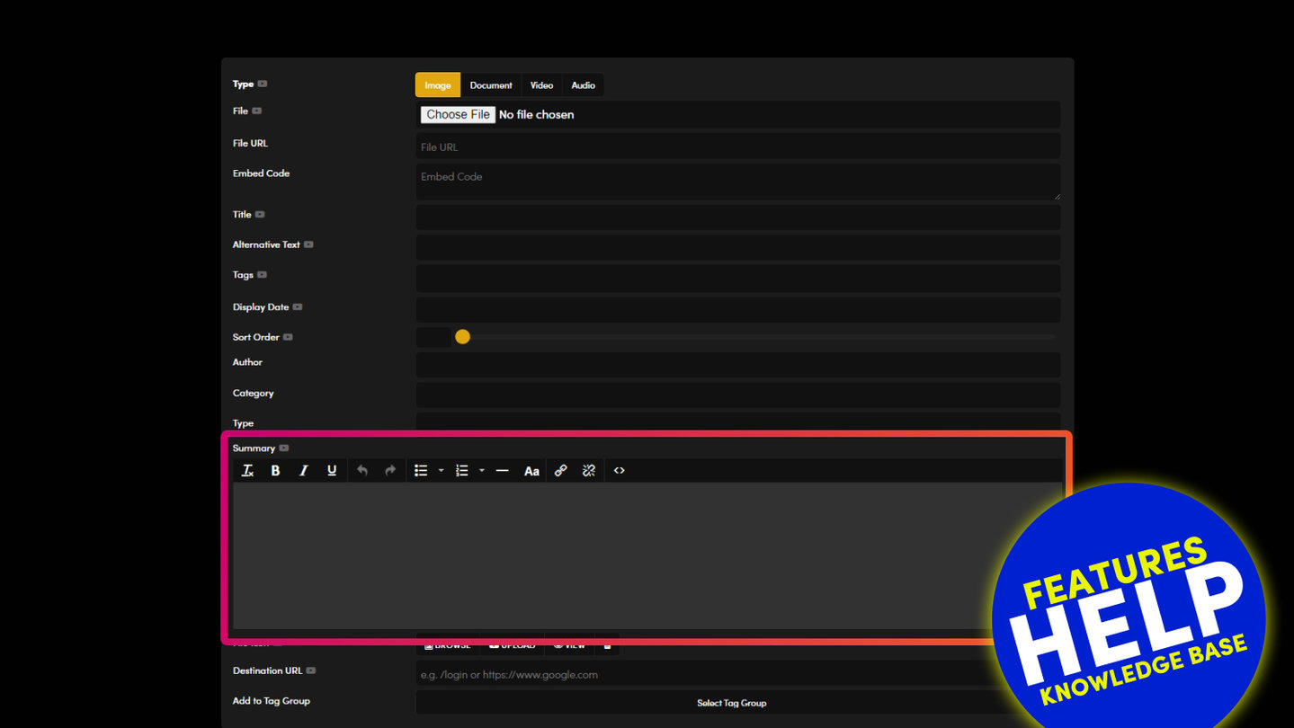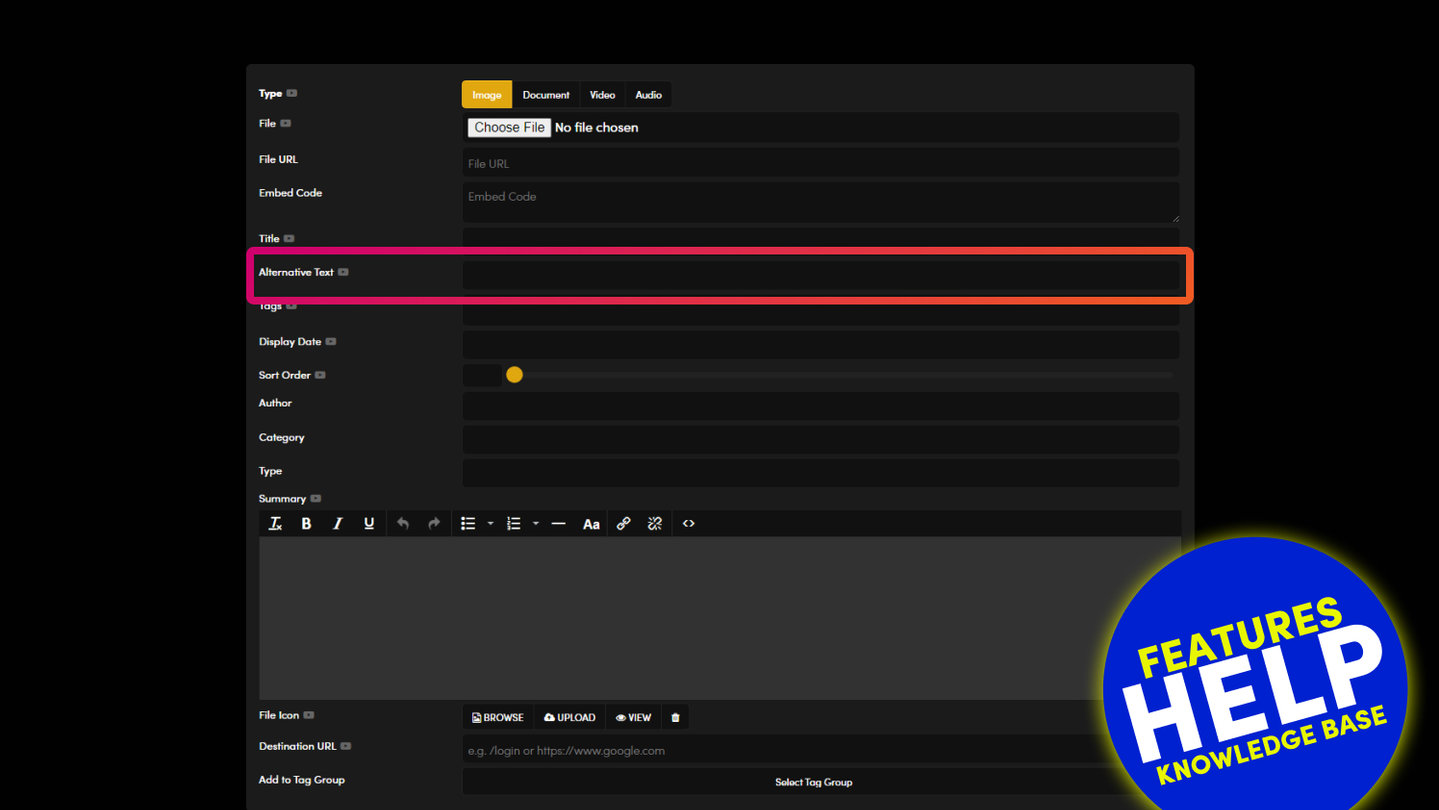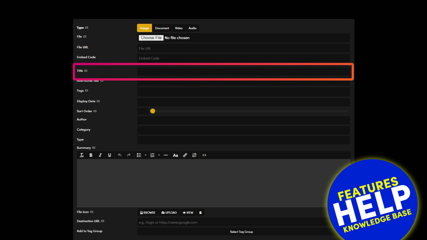 Once a 'Type' is assigned you can filter by the file type in various locations are the CMS, including: