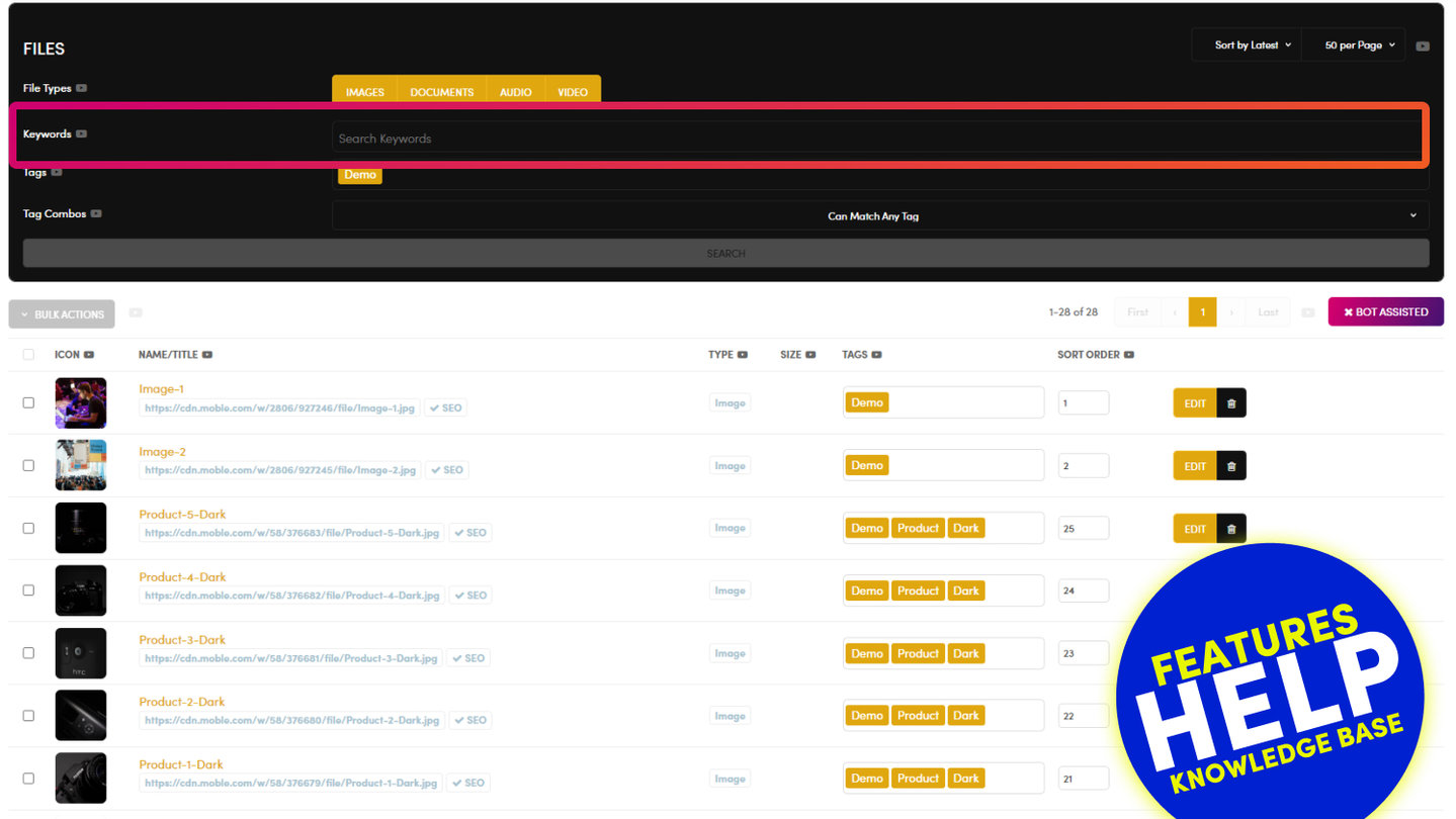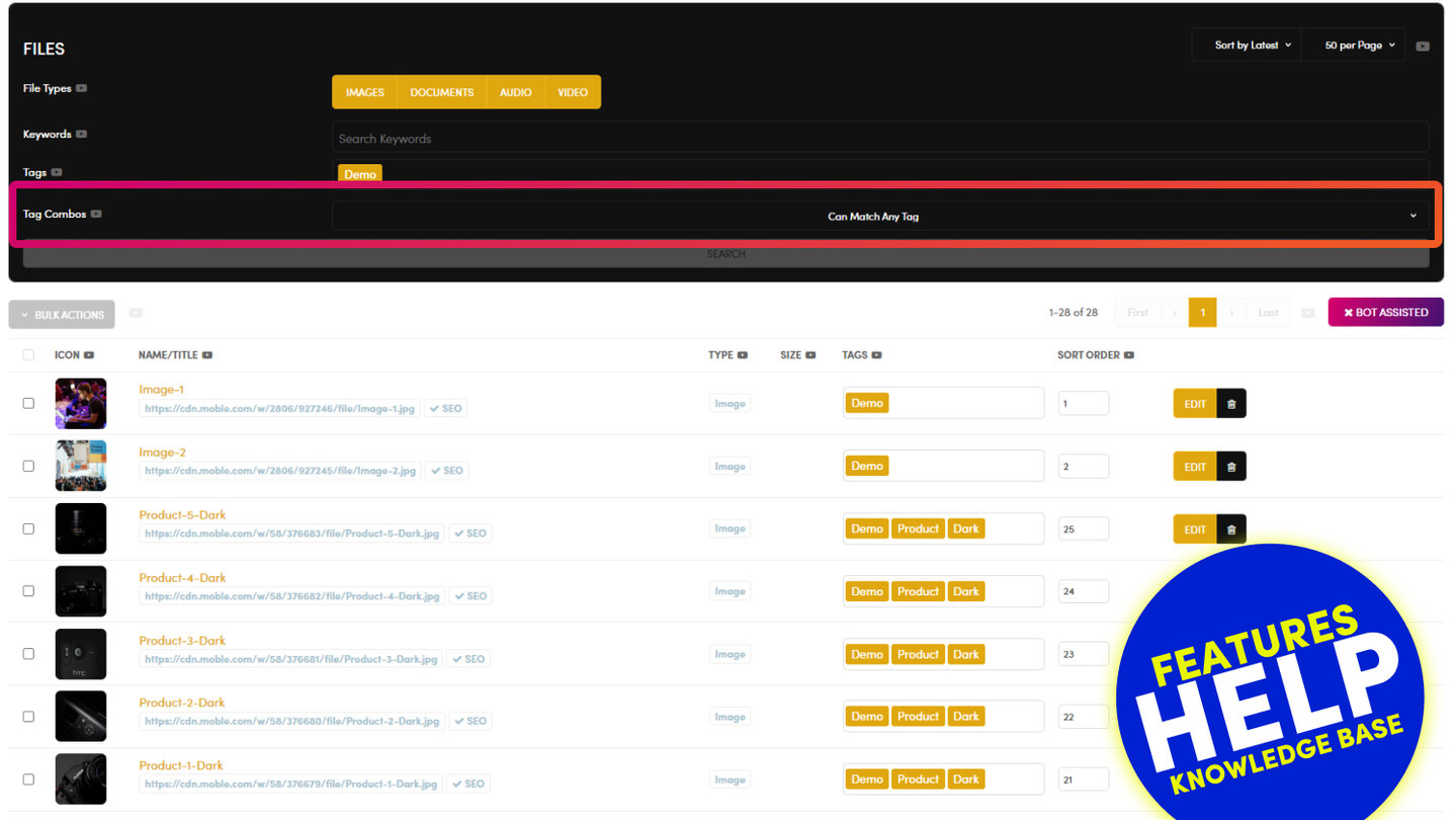 If you highlight 'Images' and 'Documents', then files that are both 'Images' and 'Documents' will now display in the list.