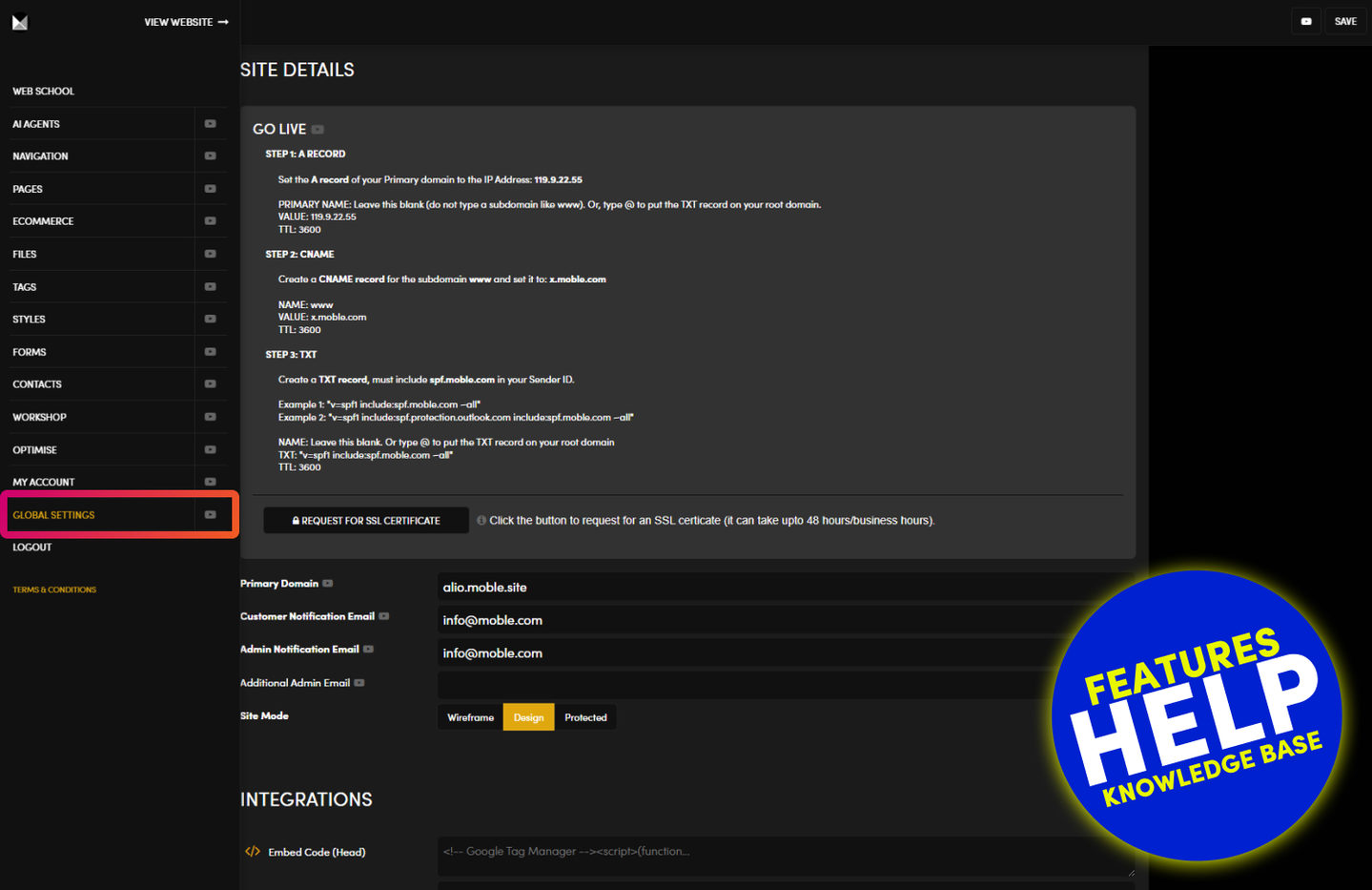 GLOBAL SETTINGS KNOWLEDGE BASE
