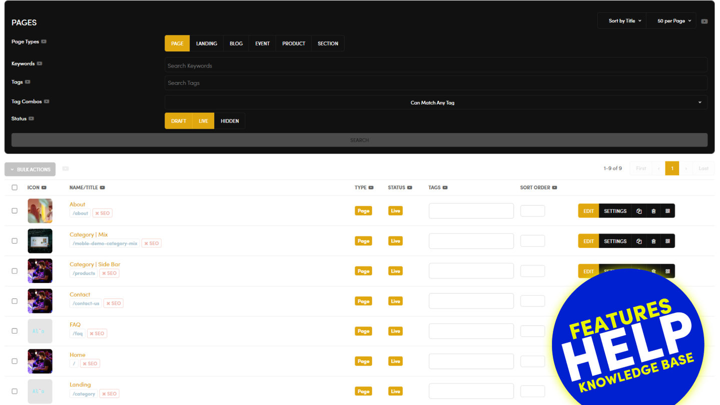 Product: Much like 'Events', 'Products' are also just like any other page. You can keep your admin area neat and tidy by grouping your products. Within the 'Page Settings' area, remember to set your 'Page Icon'.