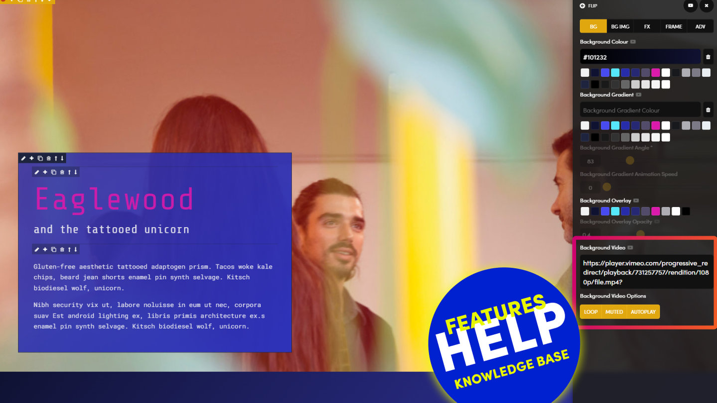 A common query for first timers is knowing when to use an embed image v's a background image. Background Images are most commonly used when you want to apply text on top of an image, here we choose a background image so that a Fixed Height can be applied to your Frame.
