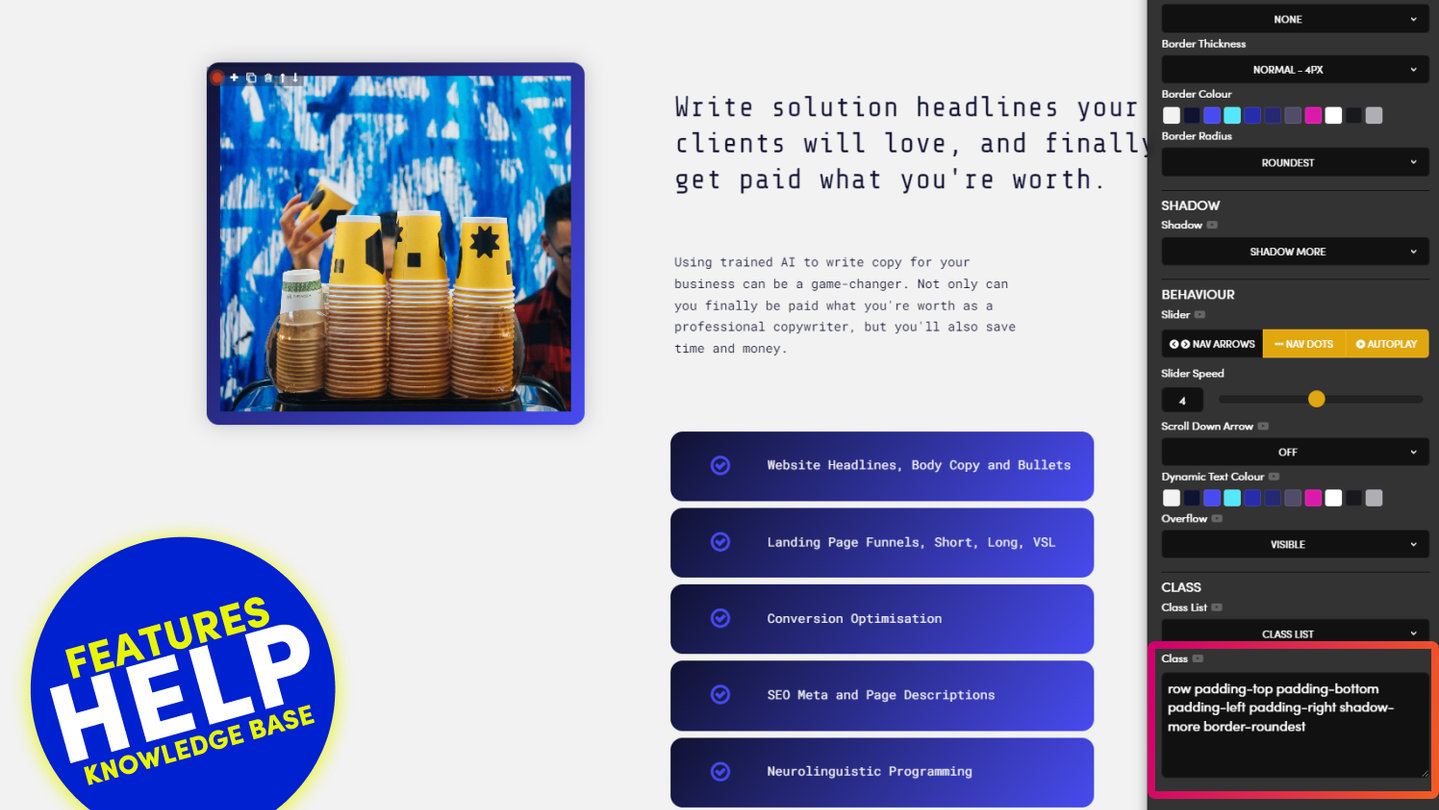 Scroll Down Arrow adds a clickable button to the top of your page, that when clicked, automatically scrolls down to the next row.