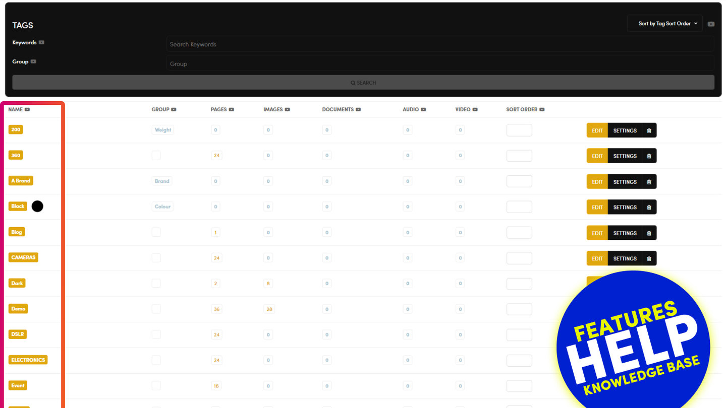 Simply add the 'Tags' that you require for each page or file. Tags that you have already created will appear as you start typing.