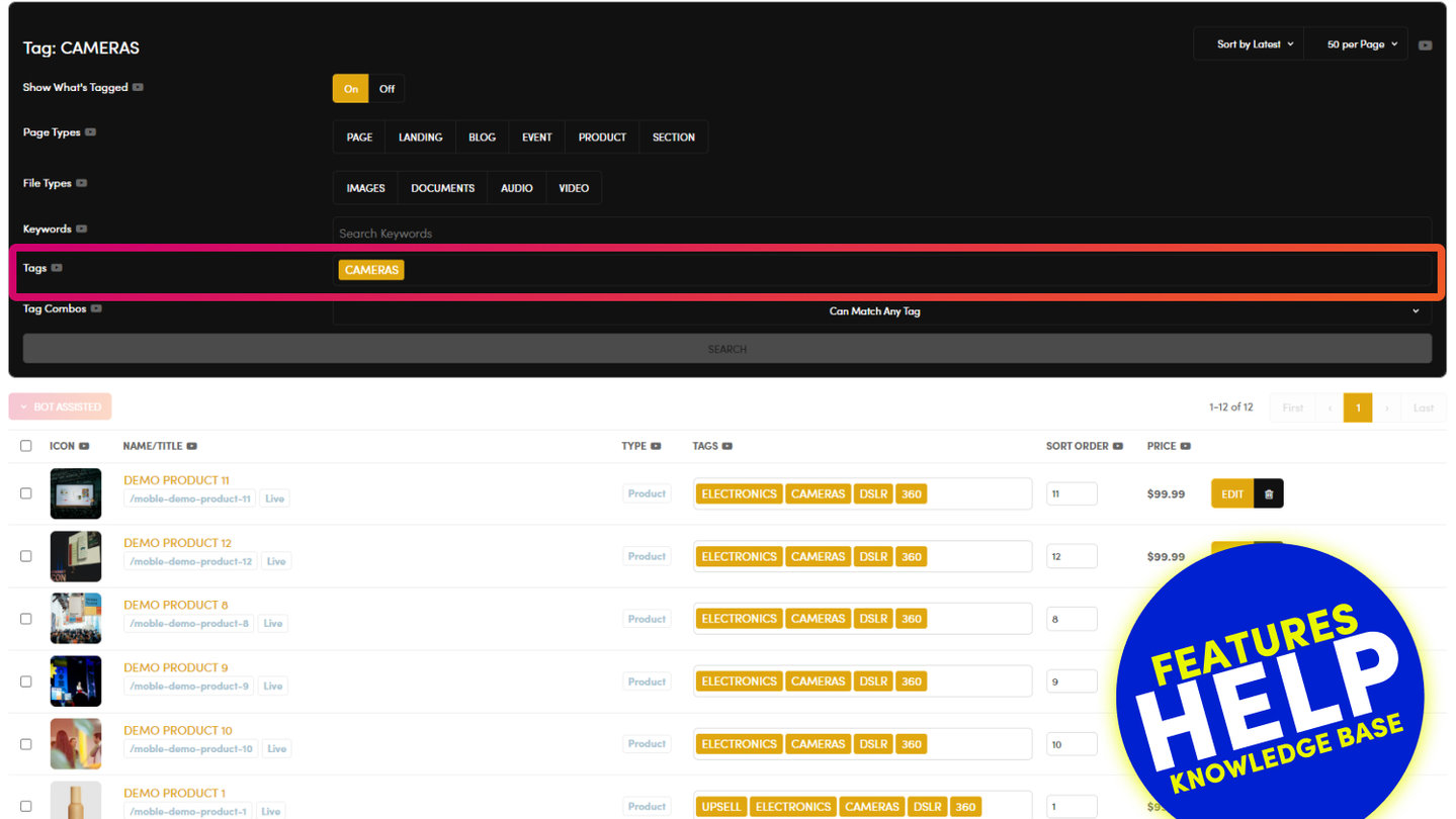 Tagging in this way has a wide range of uses on any website. It could be great to show featured items as in the guitar shop, though it could be used for anything, such a latest news, staff articles, products, services, absolutely anything. You can even upload a batch of images, tag them and they would be instantly published, without you having to even visit the page! You could even create special landing pages for ads to see what content converts better, or even create special pages for sales presentations to drill down quickly into the content that you wish to focus on. It really is powerful, tags and widgets makes light work of your content management.