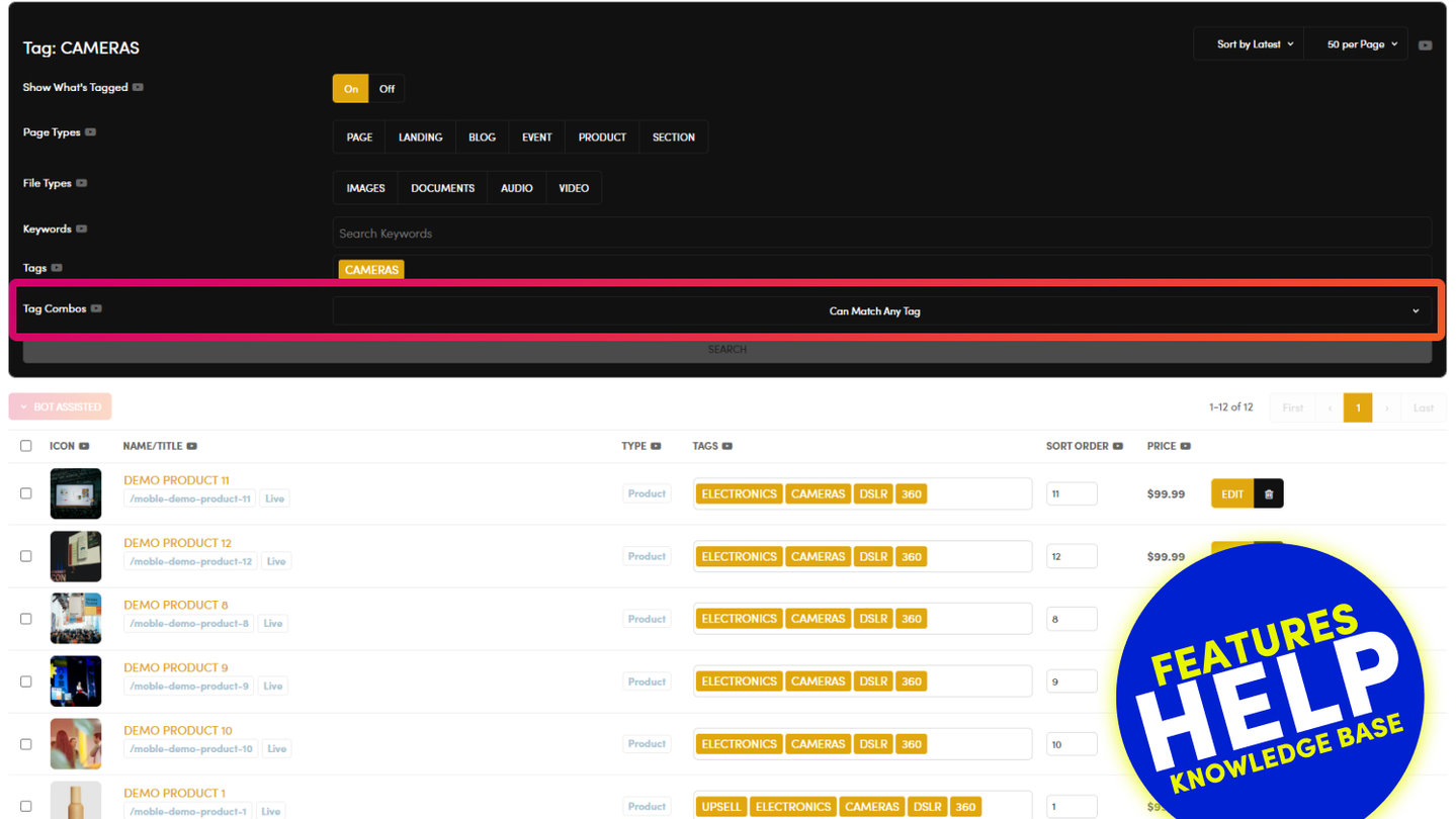 Tag Combos are a great way to filter what displays in your widget more precisely. In addition to showing 'all' the Pages containing the tags that you have selected, you can also adjust the conditions, so that what displays must match every tag, otherwise, it will not show. Let's explain Tag Combos: