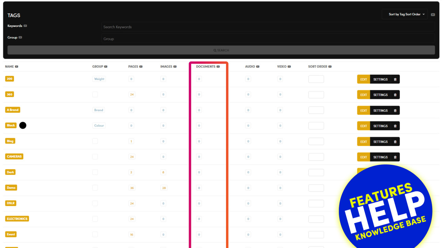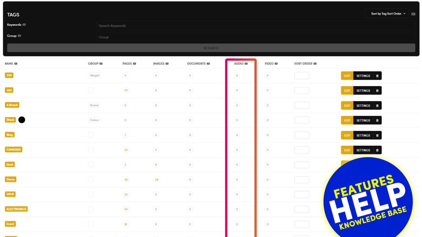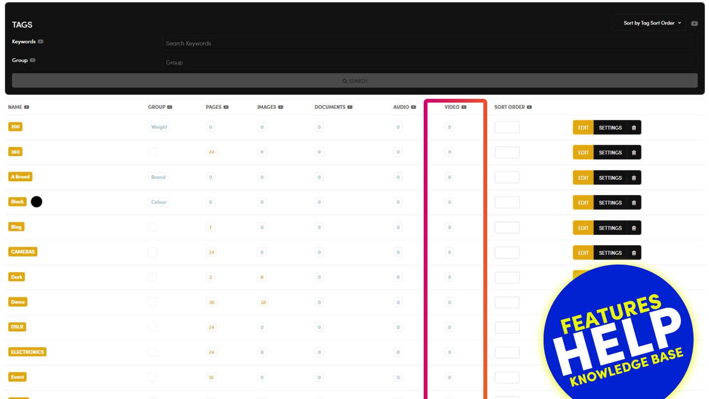 Every Tag must be given a name when you first create it. Tags are created in the Tags section by clicking the 'Add Tag' button (top right). Tags can also be created in any Tag field throughout the website.