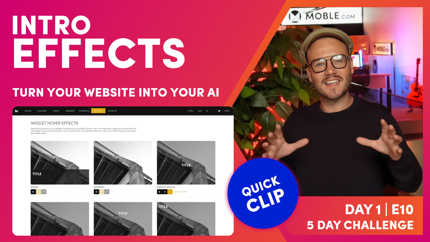 Now during day three, we're going to be working a lot with widgets. So during that day, you can come back to the effects to change it at any time. So this isn't a big decision at this stage, but I do want you to have chosen your final effects by the end of day three because that's important when we invite your content team on day four, so that everyone's working together consistently.