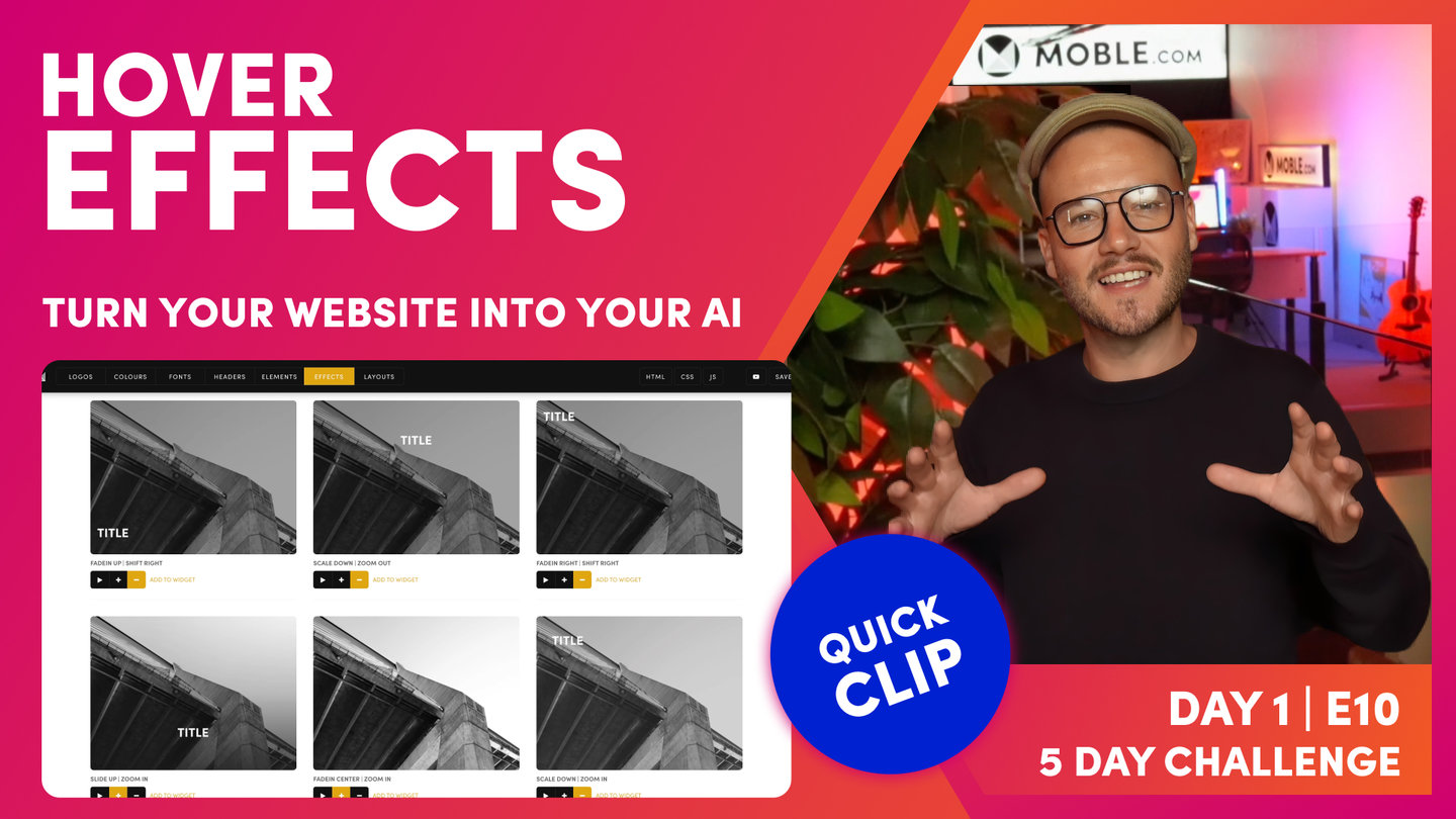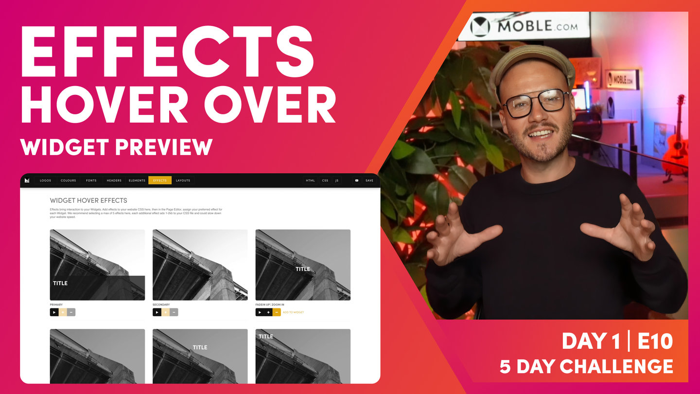 MOBLE CMS enables the Hover Effect of your widgets to be changed. The default animation are applied in the Effects Tab of the Styles area.