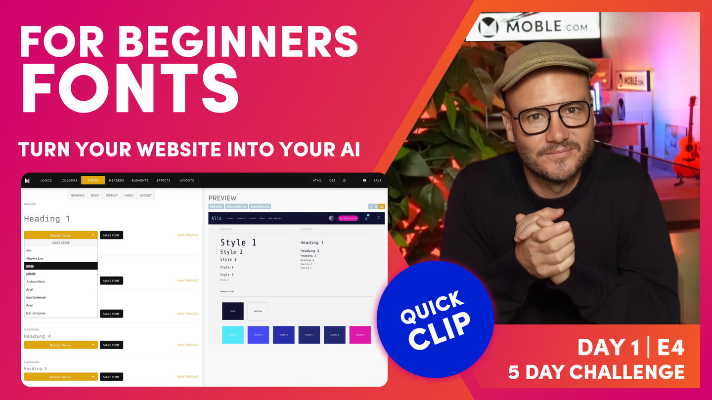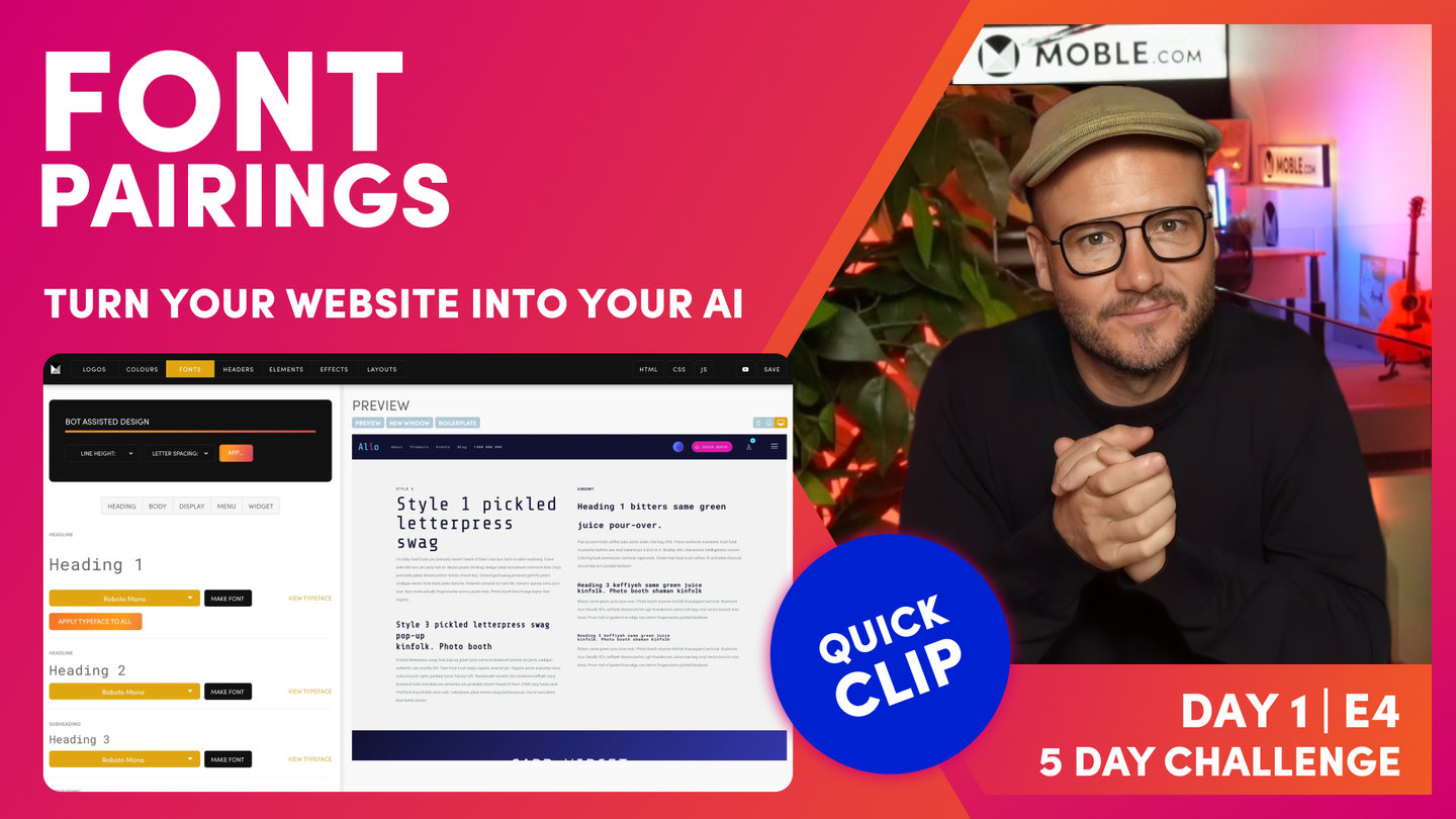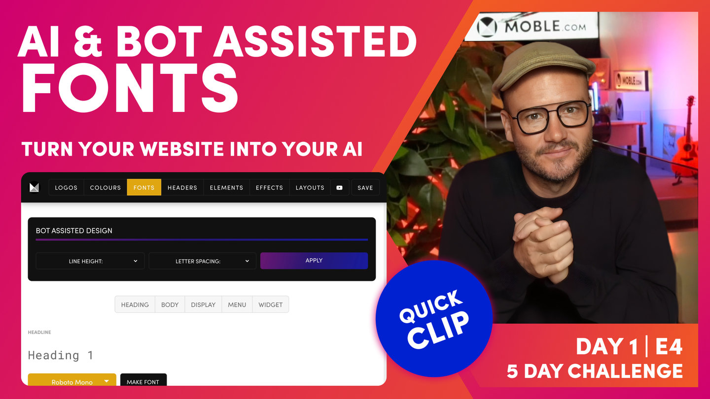 Now, this is based on the fact that Moble have built hundreds of websites so we've built our AI Website Bots knowing the more common use cases. So it's most likely that we'll get you... If you're a designer, you want specific things, it's most likely we'll get you very close with the bot. So that's going to save you having to go through each of these font in the palette and make them all out one by one.