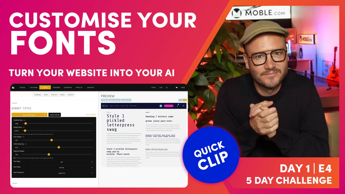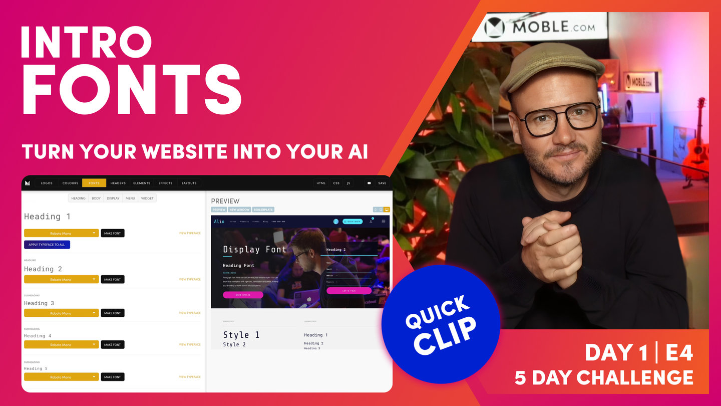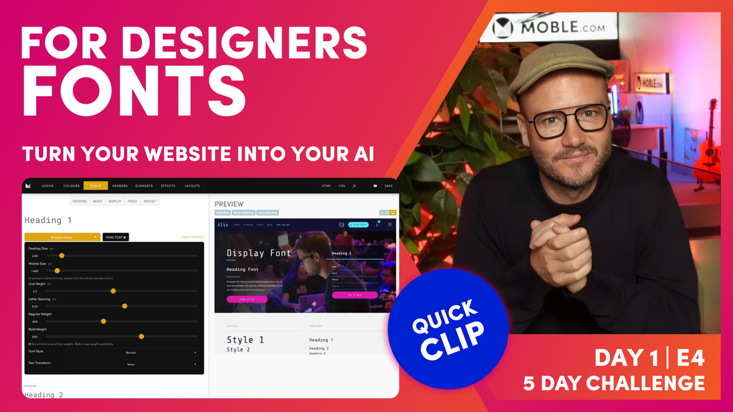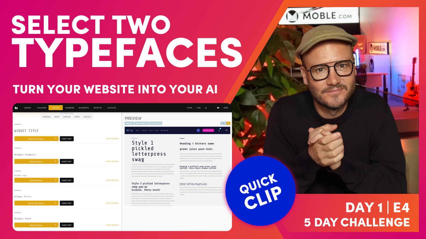 Now, this is based on the fact that Moble have built hundreds of websites so we've built our AI Website Bots knowing the more common use cases. So it's most likely that we'll get you... If you're a designer, you want specific things, it's most likely we'll get you very close with the bot. So that's going to save you having to go through each of these font in the palette and make them all out one by one.