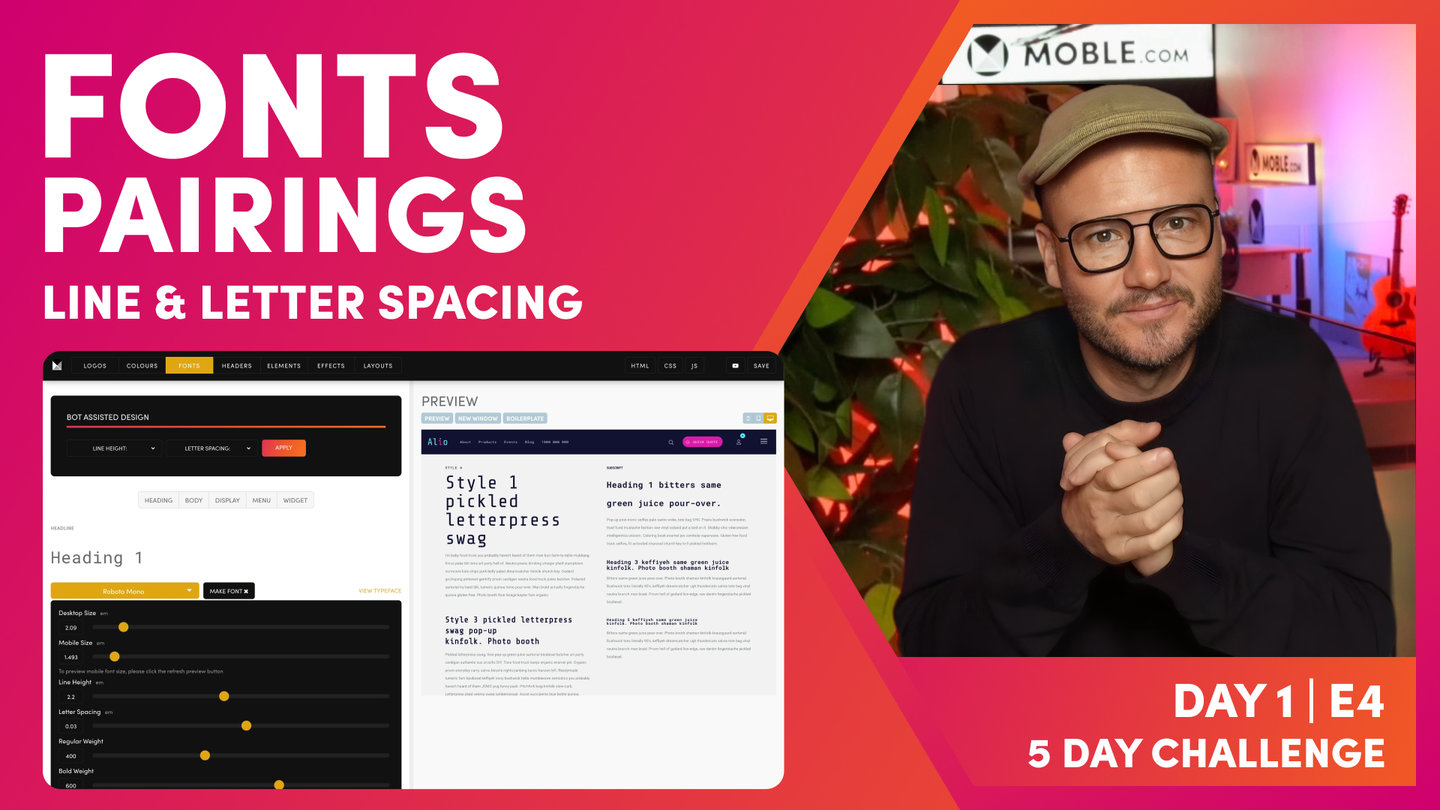 "Okay. At this point, I'm going to introduce you to line height and letter spacing. Now, if you're a designer, you already know this. But if you're not a designer, sometimes you'll be wondering why a particular webpage looks good and why on other times it does not. And that's often because when you've had a designer design a webpage for you, they understand subtle differences like line height and letter spacing. So like I say, if you're not a designer, we don't expect you to know this because we've got AI Website Bots that are going to take care of it all in seconds.