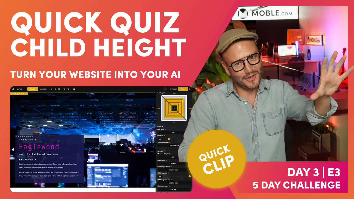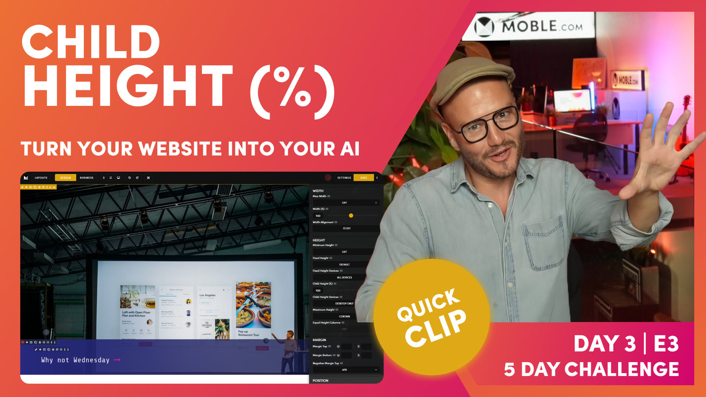 Therefore, the MOBLE Team, tend to encourage Child Height rather than Absolute and Relative. We also know from years of experience that there are less potential conflicts when your future content team begin to add new features and content to your page. An example of this is Background Video, as you now know MOBLE makes the hard decisions for you behind the scenes, well, there is also code running behind the scenes too. You don't need to know any of this, but when you add a Background Video we automatically apply a Relative class for you, and if the content team start randomly adding Relative classes everywhere, and don't clean up their classes as they go, they could in theory, start to leave a trail of unused Relative classes around the page, which could confuse the Video behaviour and cause a conflict. This is really is an edge case, and MOBLE has algorithmic procedures to prevent such situations by striping out unwanted classes, but even so, we've scene it happen. So MOBLE encourage Child Height for Designers and Absolute and Relative as a supporting tool for Advanced users.