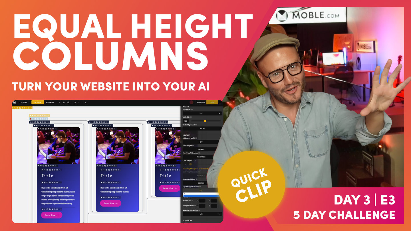 Equal Height Columns extends all Columns the the Height of the the tallest Columns. This technique tends to be an edge case, since many designers prefer to use Widgets which does it all for you automatically. Though, it's worth learning even if your website doesn't require Columns with equal Heights, since in this Episode we also intro Maximum Height for the first time, which we'll use more and more in the ongoing YouTube classes that follow this series.
